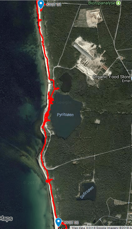 But now, just the odd dog-walker, a few joggers, some canoeists paddling by, and a birdwatcher friend. Looking to the sea I could see bands of rain passing slowly northwards. The edge of one cloud must have just clipped the island, and for a pair of minutes it sleeted a little, followed by a ten minute burst of bright sunlight. Packing up the M60 I trudged northwards again. Here the coast is rather straight and at one point I could see the distant chimneys of Rønne to the South and Hasle to the North, both about 5km distant. Over-heating in all my gear I sat on the beach and watched a male Long-Tailed Duck feeding not far from the shore. It is a fantastic privilege to share time, to really observe a wild creature going about its business. To watch it struggle for survival, a perfectly evolved amalgamation of form and function. The Long Tailed Duck is an tough little bird, and it was extraordinary to imagine it swimming underwater looking for food on the sea bed, as it periodically disappeared from my view with a rather flamboyant dive.