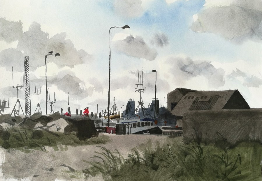 I trudged onwards and stopped by the industrial end of the harbour again. The squat boat I had painted last week was no longer there.