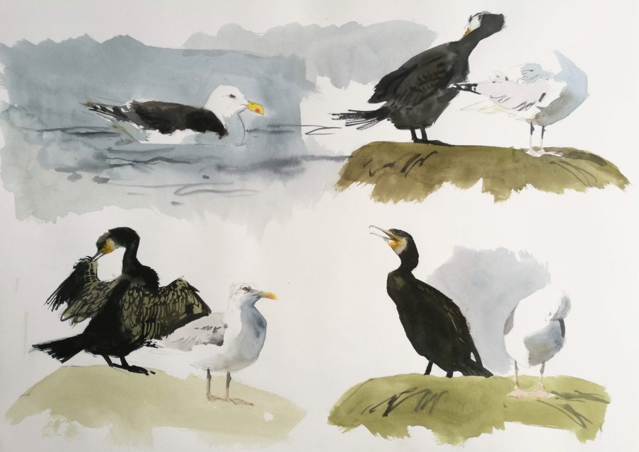 Before moving off I painted some studies of a wonderfully lit herring gull.