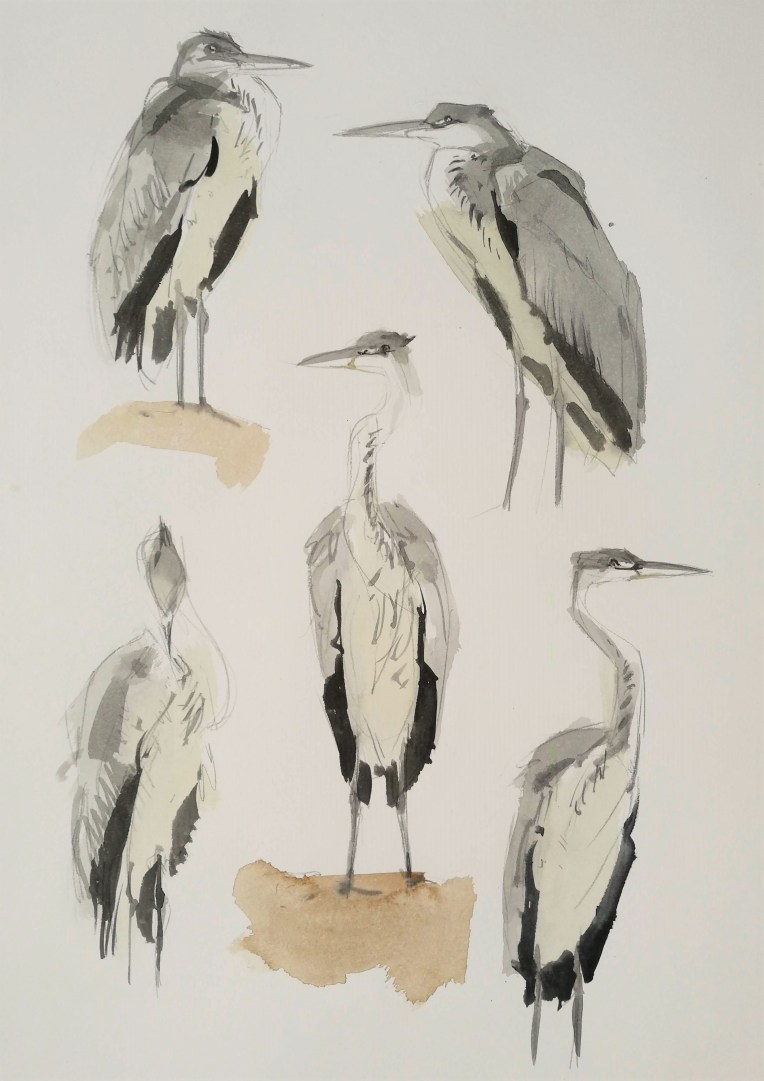 After a brief preening session the young heron hunkered down and gazed vacantly into the fog, reminding me of an unkempt and slightly chavvy teenager. The yellowish tobacco-like stain on his chest feathers added weight to my anthropomorphizing, but I resisted my urge to paint a fag (Benson & Hedges?) hanging from his beak.