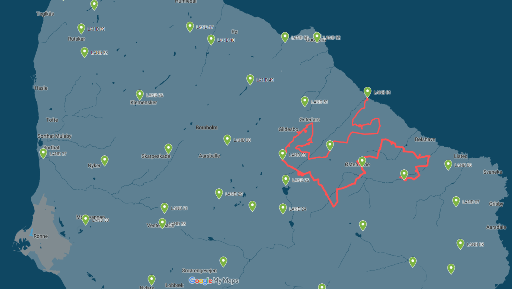 LAND 04 The church clock struck eight. Behind the clouds the sun had rose above the horizon and I started my journey. I walked through the village of Østermarie, before heading east again out over the fields and towards the sea. Perhaps it was the weather, or the time of the day, but I was struck by a sort of frontier independent spirit in the village and in the surrounding homes and farms. There were small art galleries and quirky second-hand shops, old-fashioned farmhouses, and huge industrial pig factories. Everyone seemed to be doing their own thing and getting on with it.