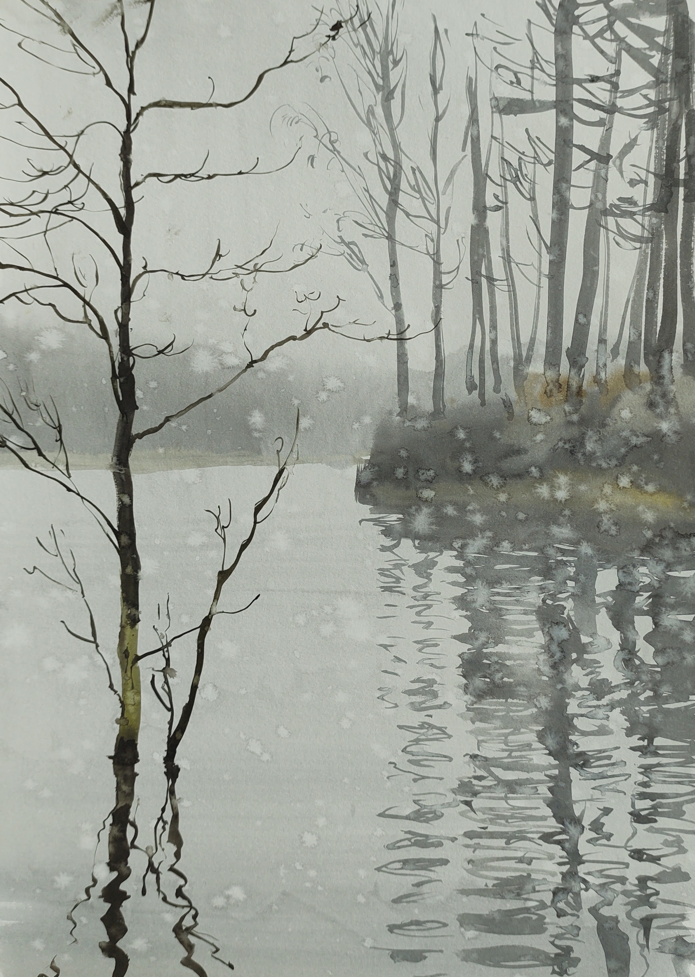 I headed north, towards the Bodilsker plantation, stopping by the side of a silent and still lake. A heavy mist descended, then a light rain.