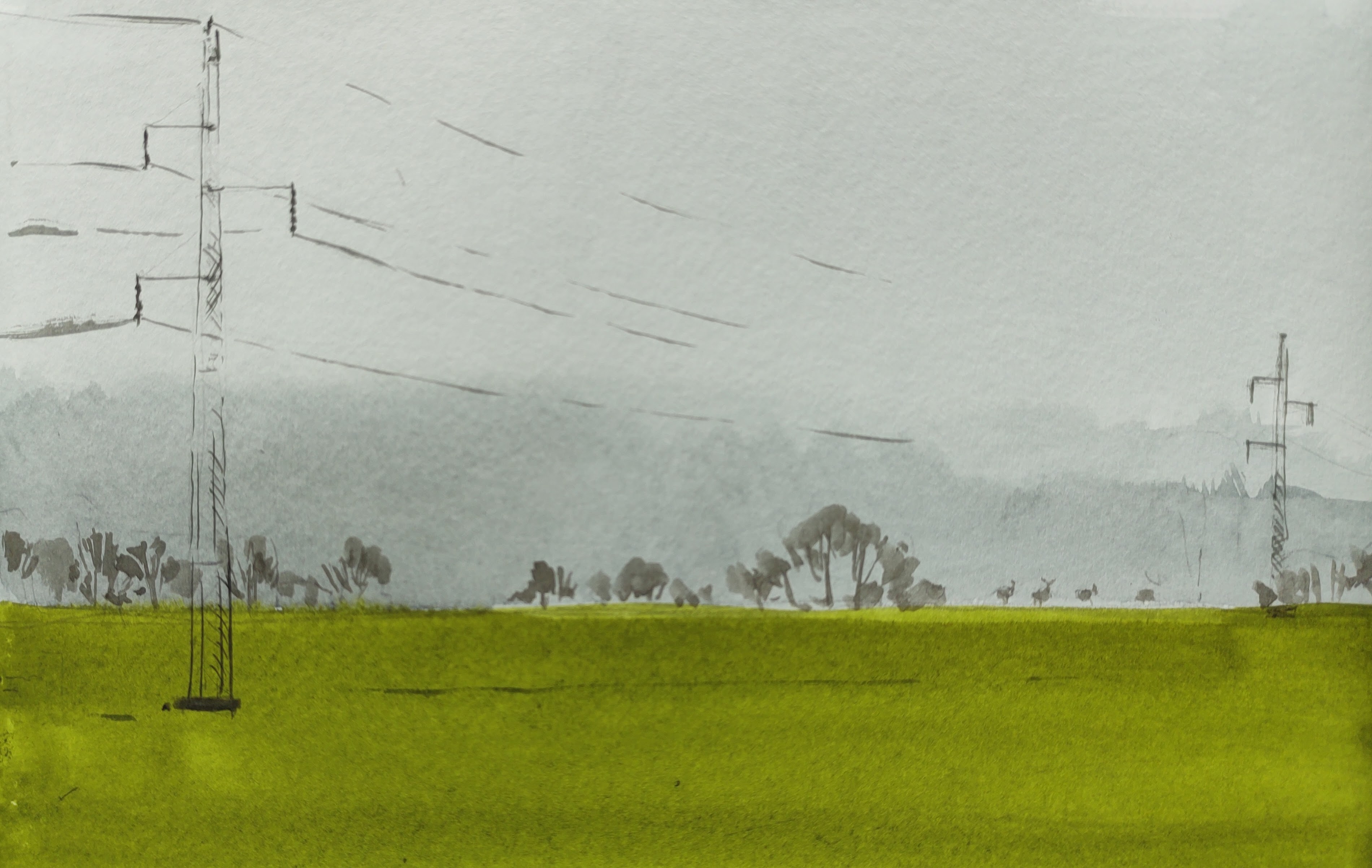 Heading northeast, my route took me towards Døvredal, through farms and fields. A thick mist now reduced visibility. A small herd of fallow deer stag walked across a field, seemingly oblivious to my presence.