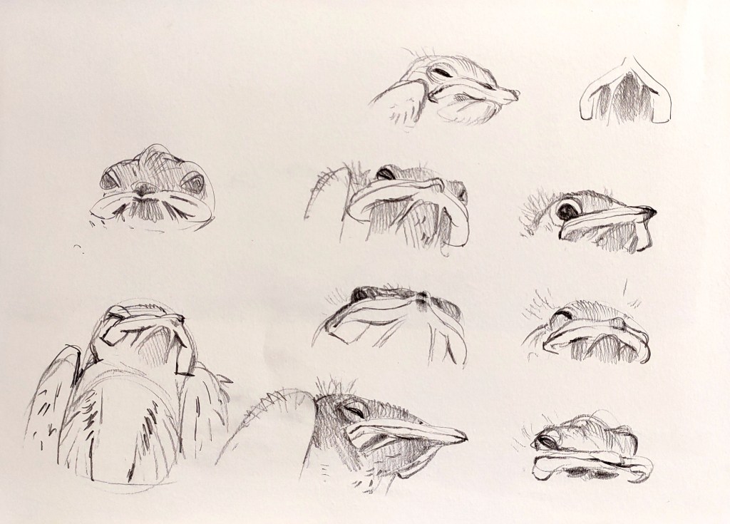 I trained my telescope on the nesting swallows in the eaves above our doorway. Close up, they were strange and reptilian looking.
