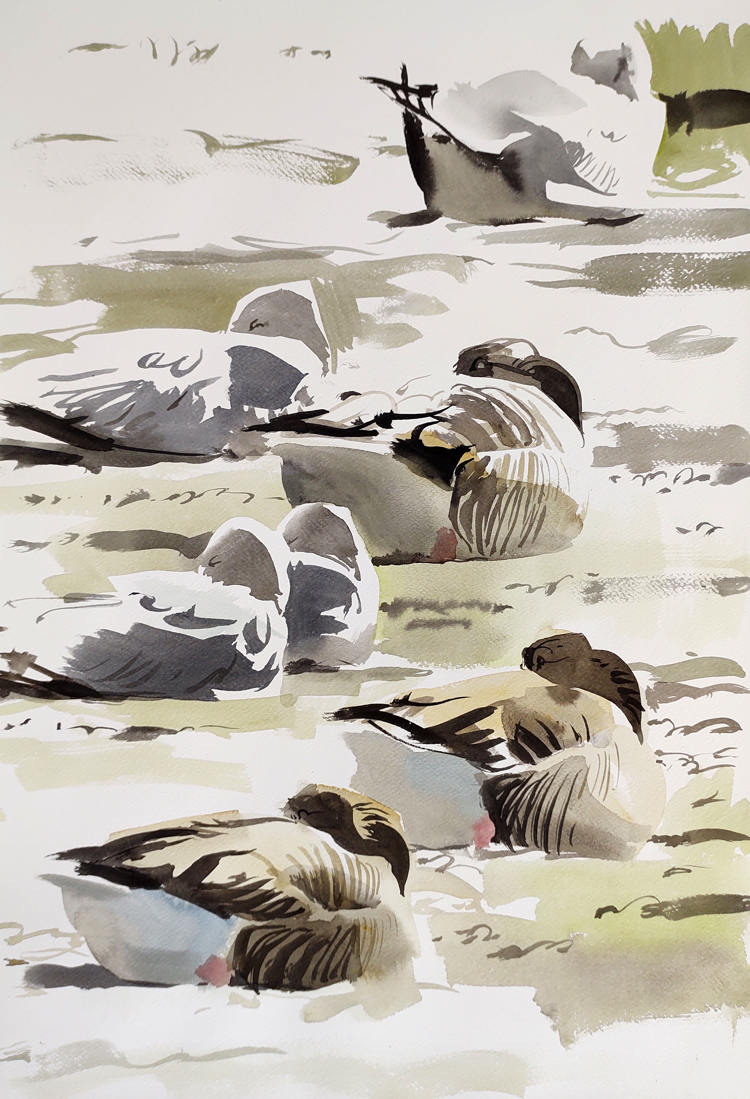 We stayed and painted the geese and gulls at Udkæret. The light was fantastic, and I could have spent all day there.
