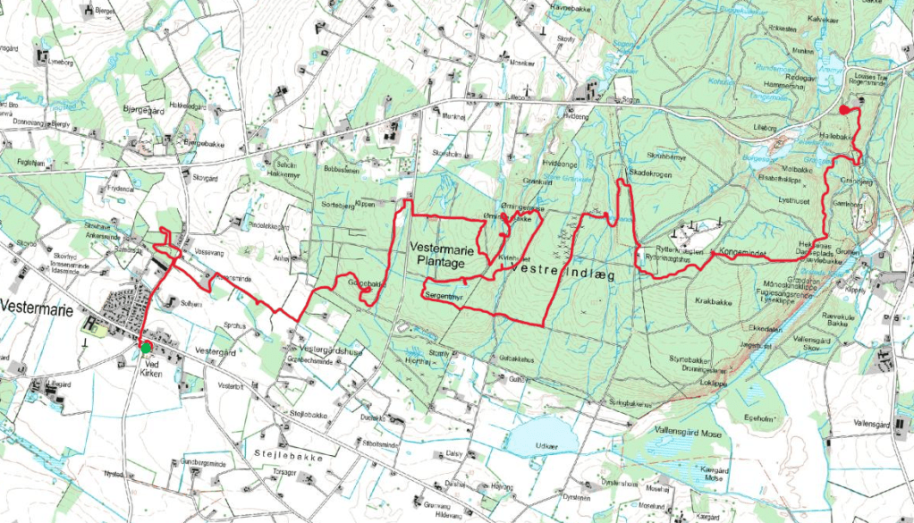 I walked on to a small wood on the edge of the village – a trip made hundreds of times when I lived here. It felt very familiar but different. Old benches had rotted away, replaced by new ones. The old camp that my kids had used was being consumed by the forest. I continued walked along a narrow bridle path that snaked along the edge of fields towards Almindingen, the central forest.