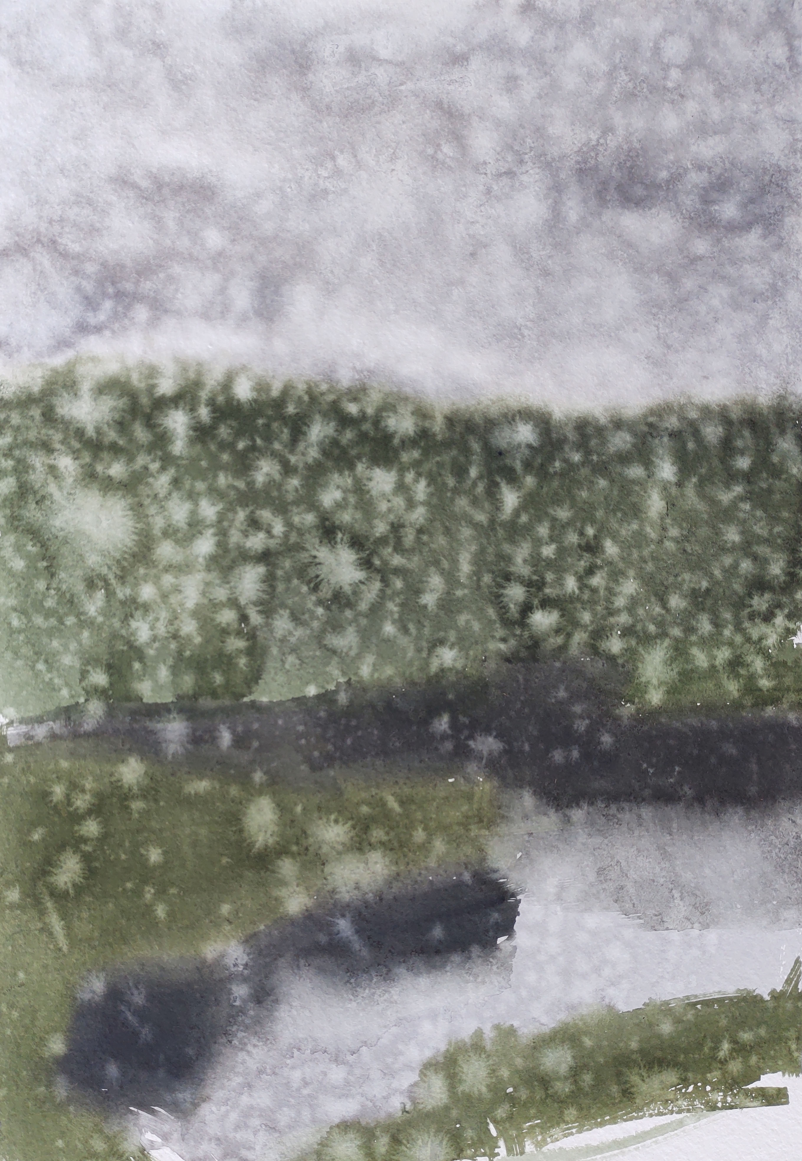 I unpacked my things in the rain, underslept and underprepared – thunder and lightning having woken me earlier from my fitful sleep. Crouched over my painting to protect it from the rain, I looked down towards the lake Åsemyre.