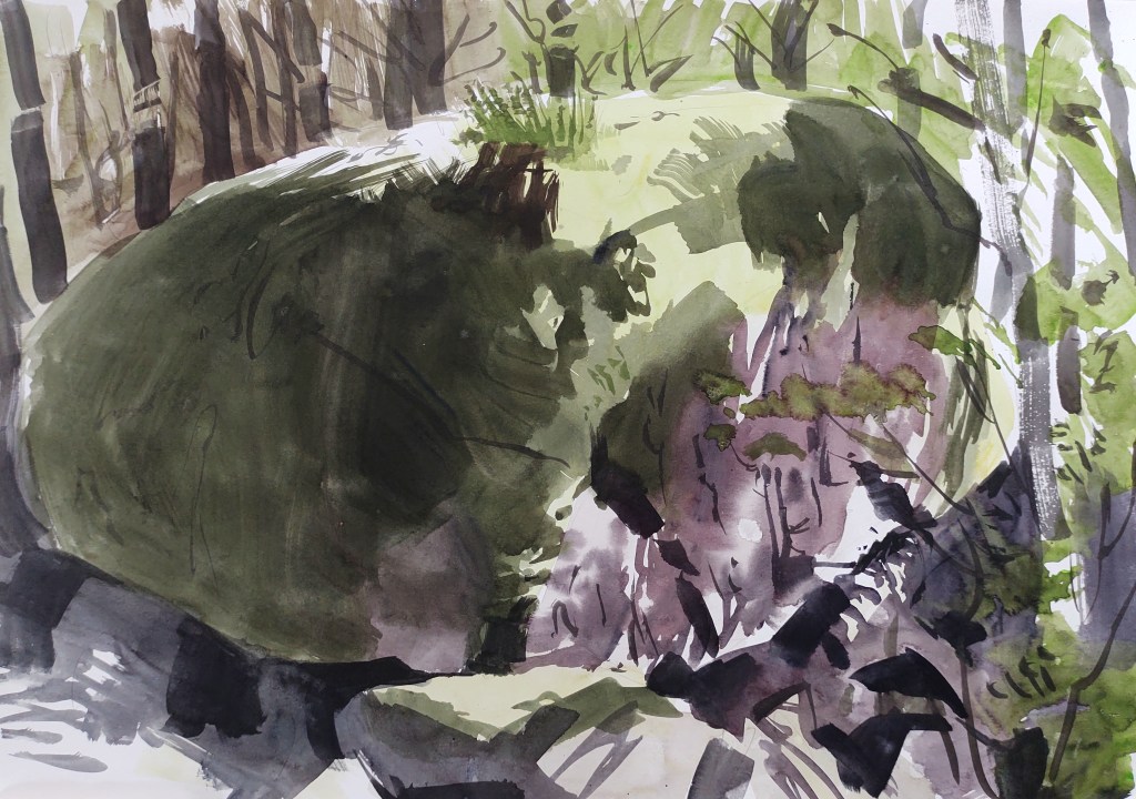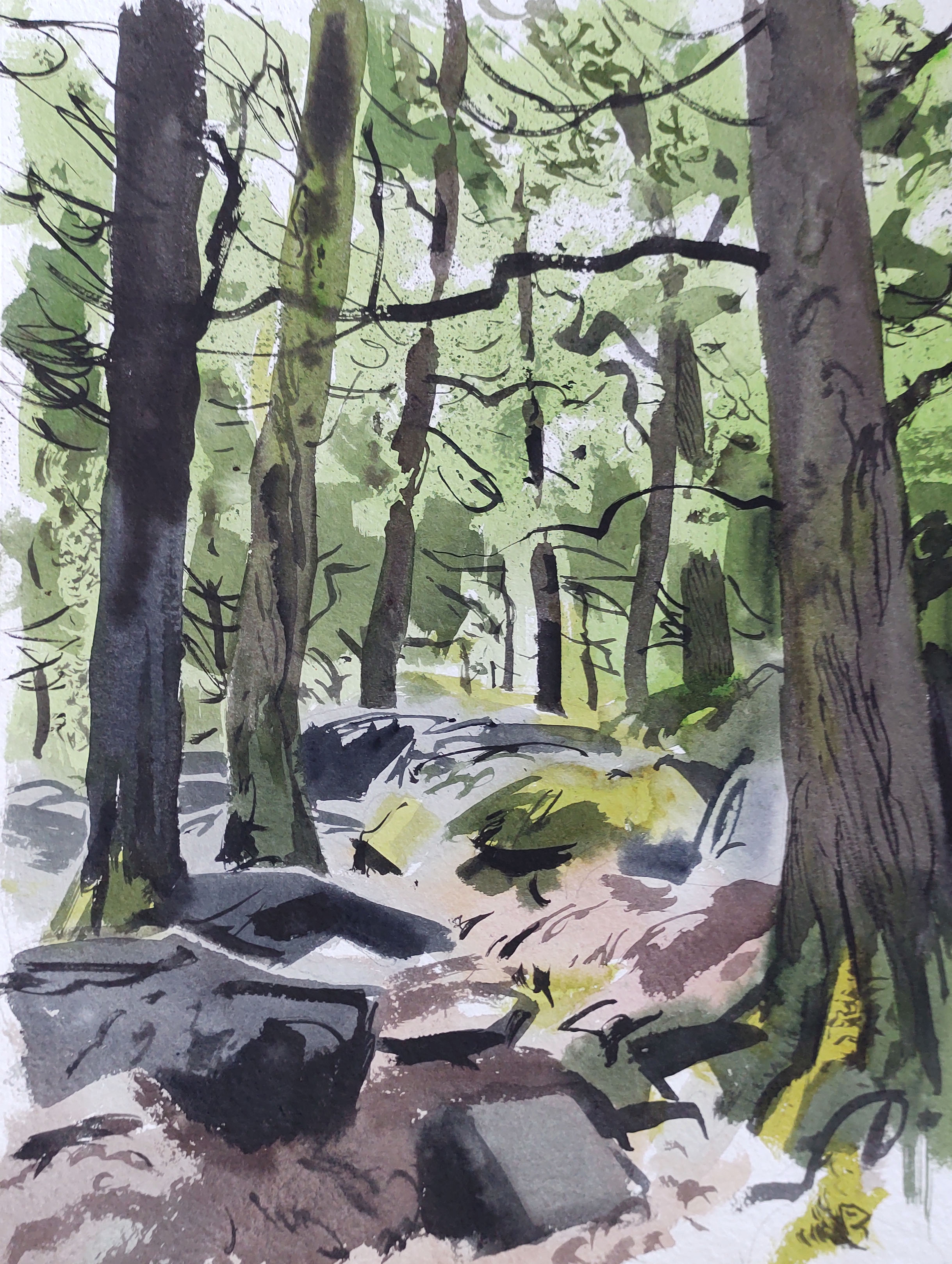 A little later still, close the edge of Grankule lake, I tried to paint the light in the trees again, this time a little more loosely.