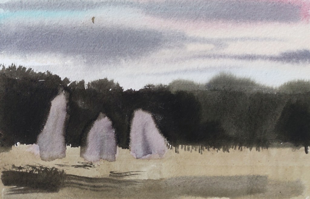 A short walk then took me to my final destination, the standing stones at Store Bjergbakkegård. I managed to make a quick sketch before the day was done – and so was I.