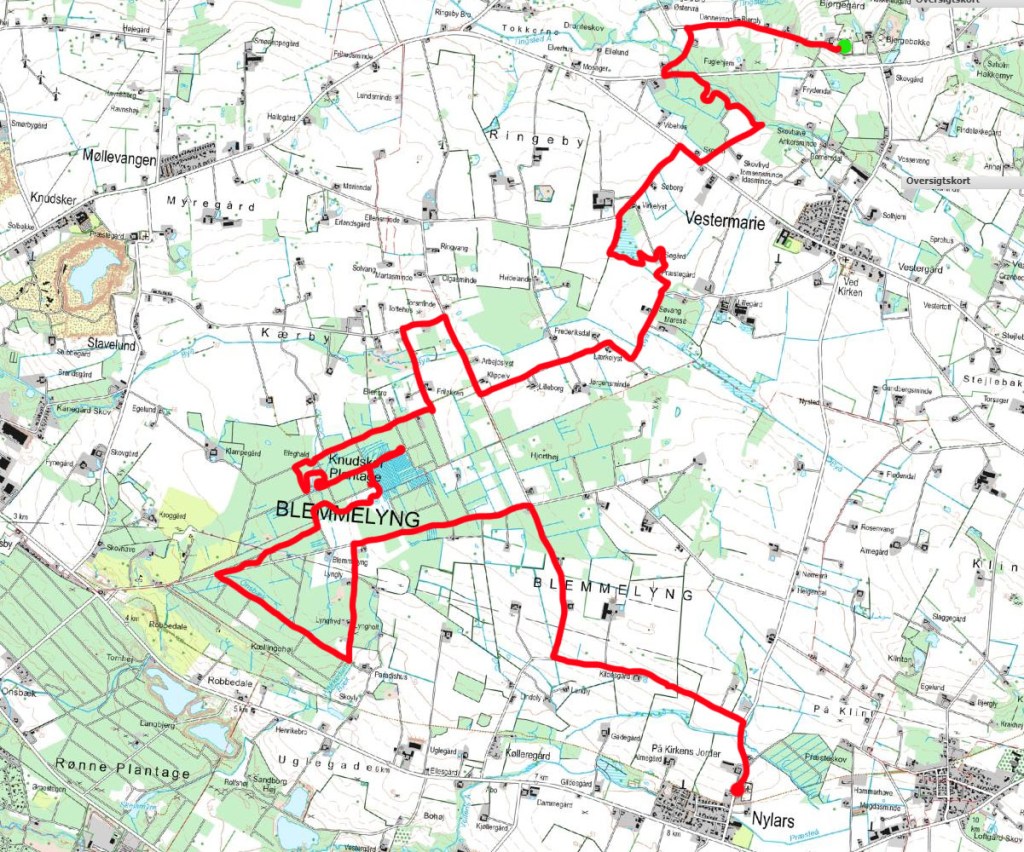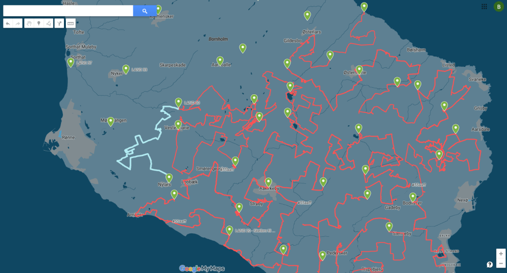 From here it was a long drizzly walk through the flatlands between Vestermarie and Rønne, where I paused a while and looked back towards the central forest.