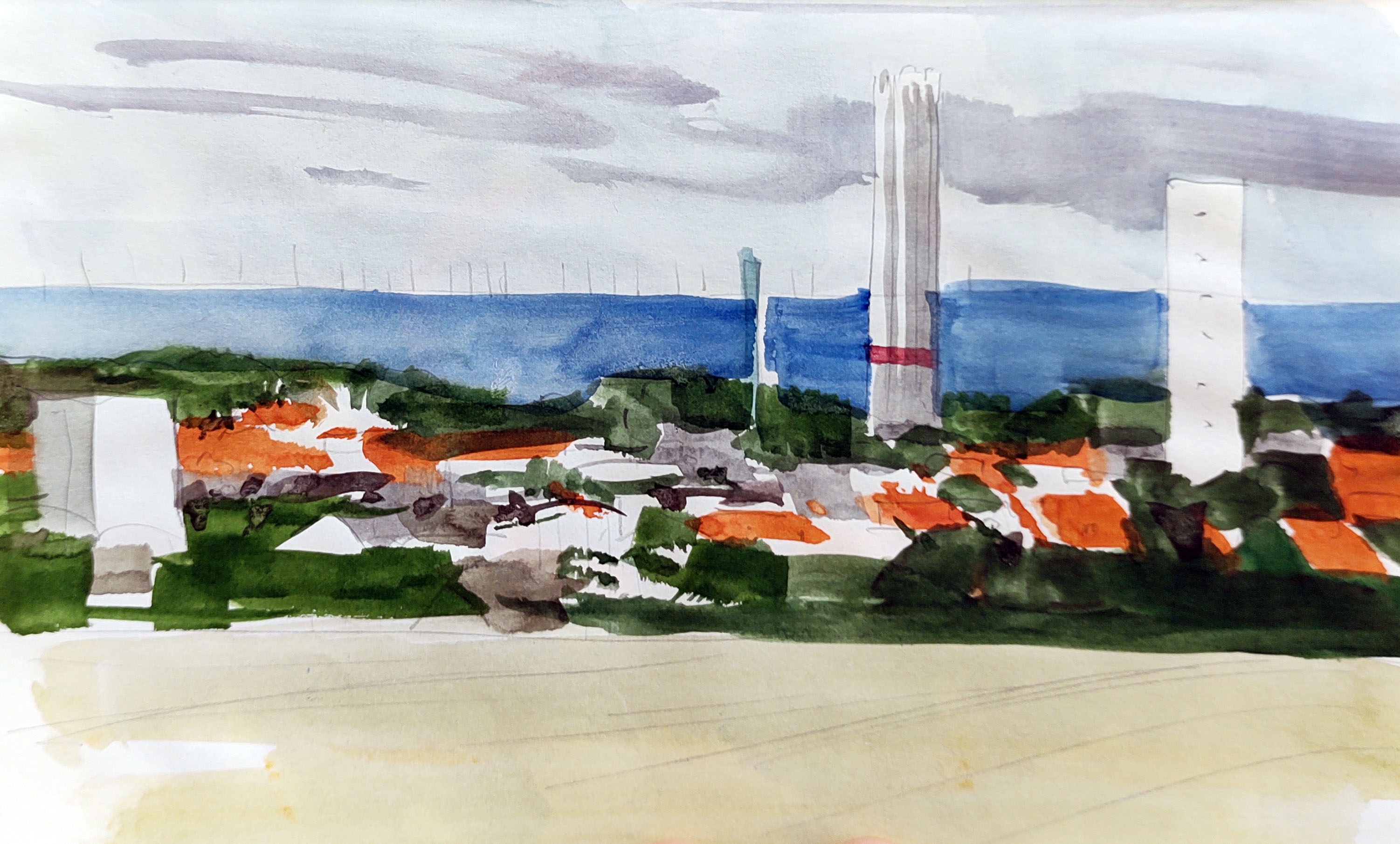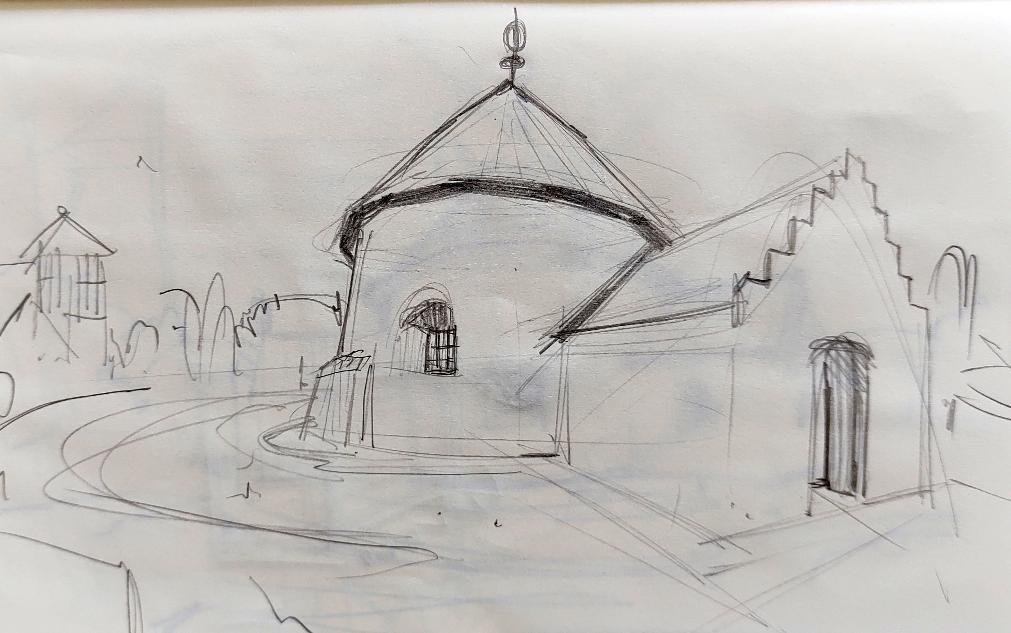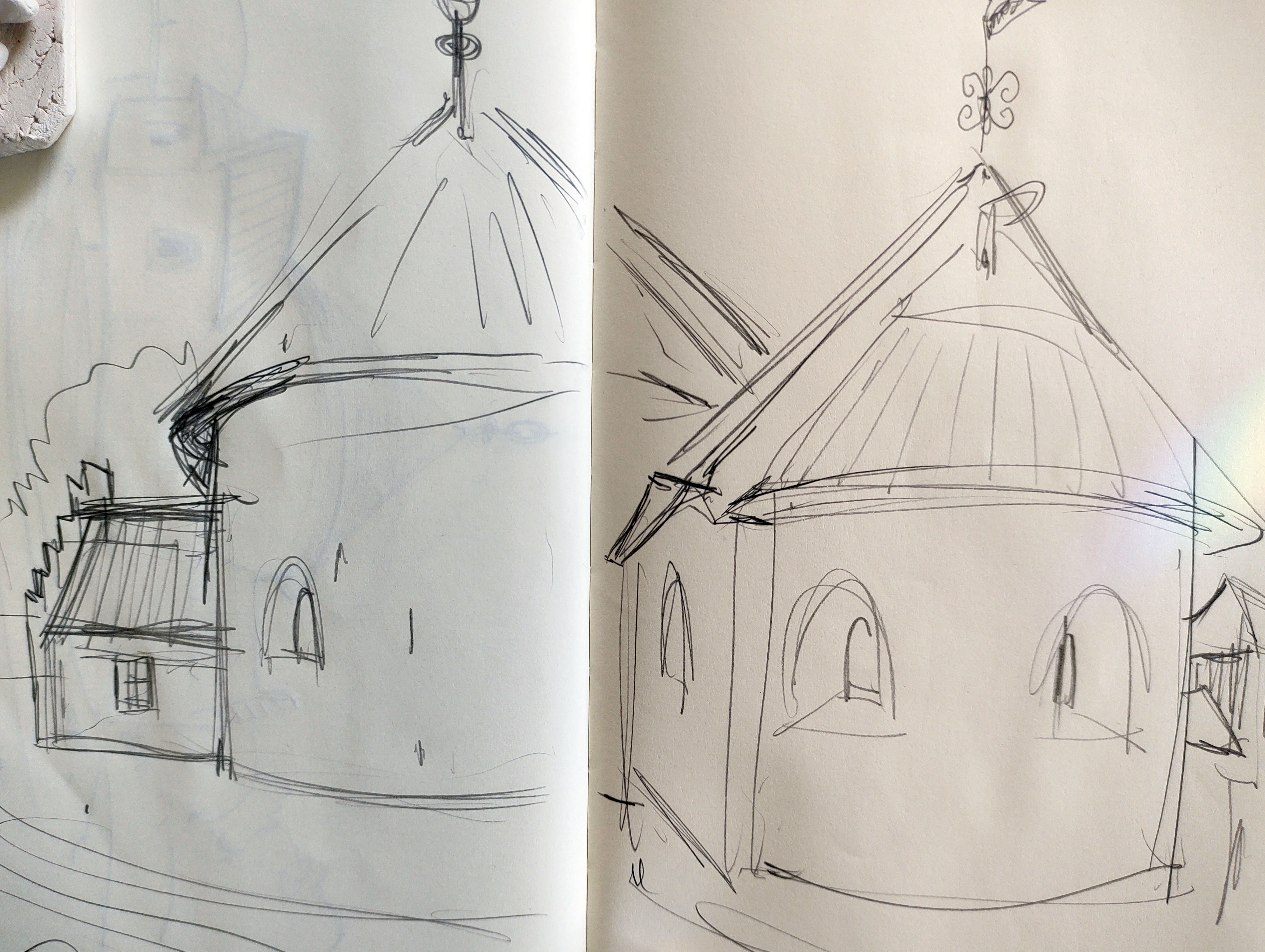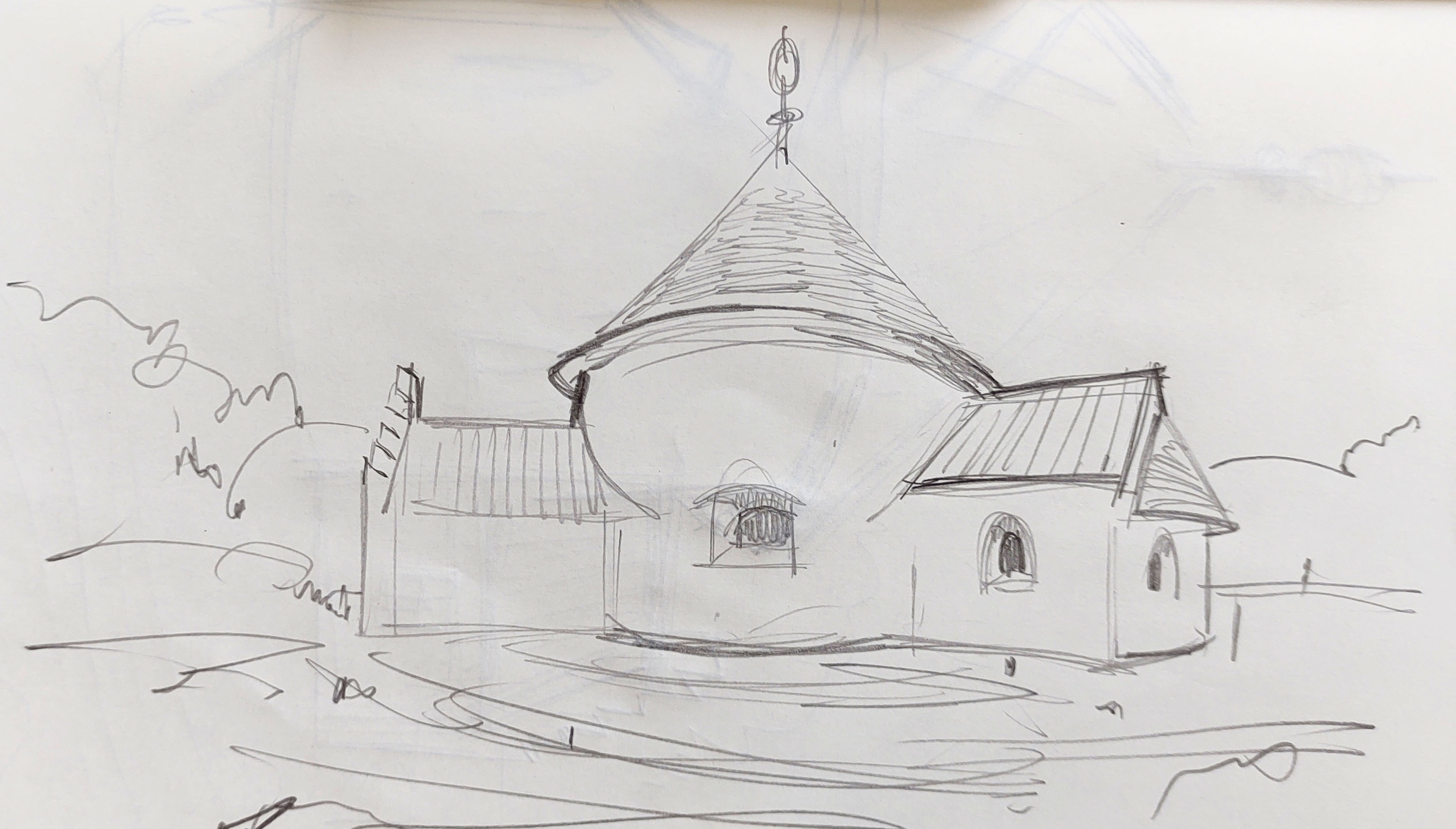 When I eventually arrived at Ny church, another of Bornholm’s round churches, I managed only to make a few quick pencil sketches before my lift arrived. Next week I’ll be crossing my fingers for another spectacular sunrise.