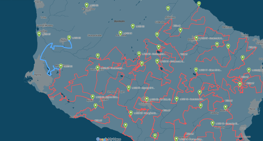 The day soon warmed up. Exhausted, I enjoyed a quick snooze on the damp grass. For several weeks Bornholm’s weather has been atrocious with storms and flooding and I felt very thankful that the wind had dropped and the sun finally came out again on a LAND Friday. I continued walking around the lakes, noting how the high-water level had submerged the sandy ‘beach’ around the lake’s shore.
