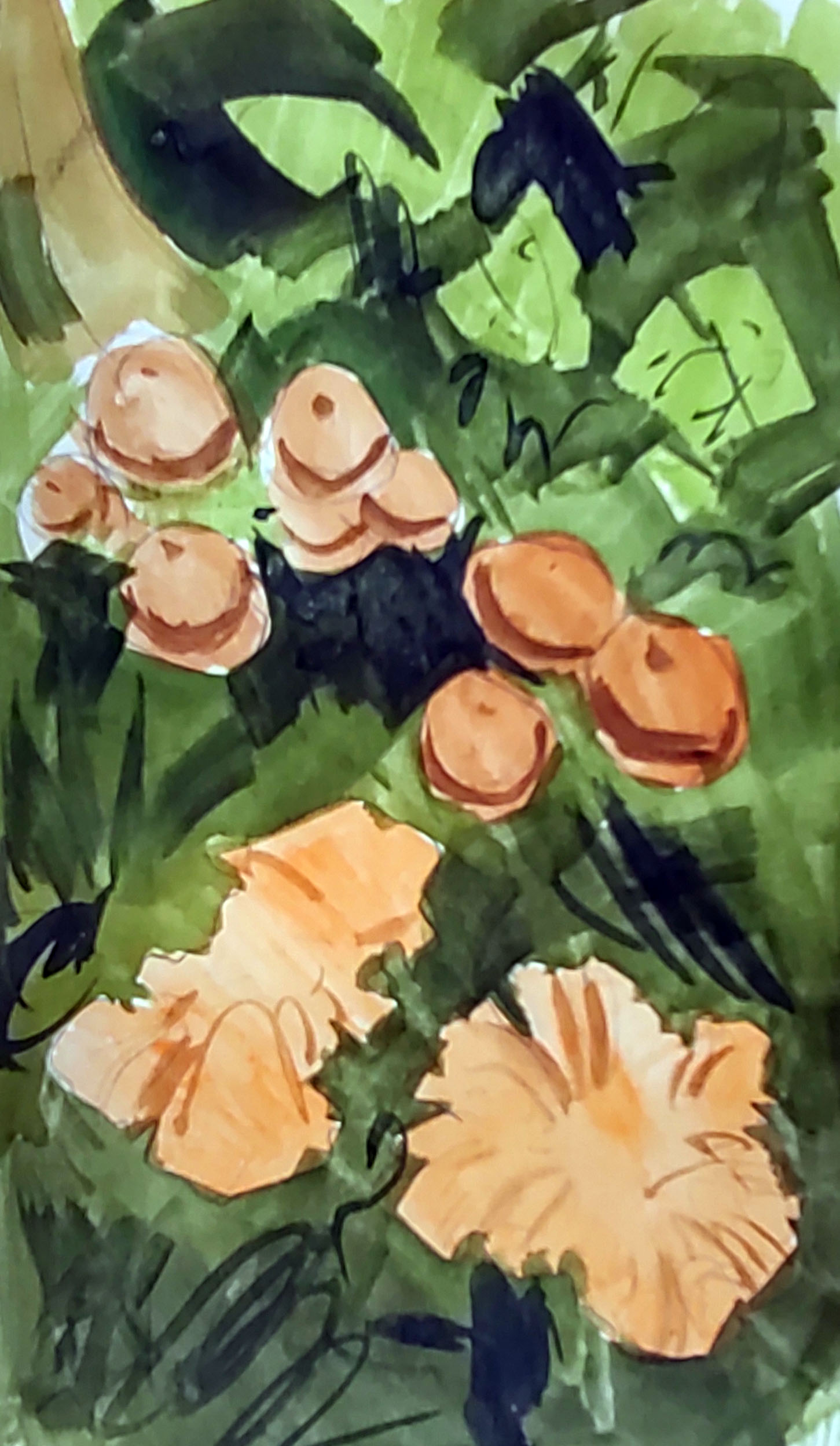 I walked on through the woods, my boots soaked through. All the wet weather we’ve had means that it has been a good year for mushrooms and fungi. And mosquitos.