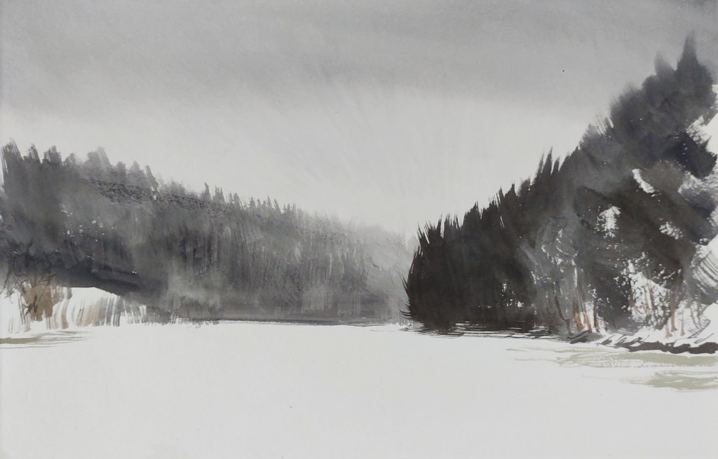 LAND 49 I arrived at the starting point feeling well-rested and prepared for a short and intense day in the snowy landscape. There was little wind and the thick layer of cloud created an even light. The temperature was just above freezing, where it would remain all day.