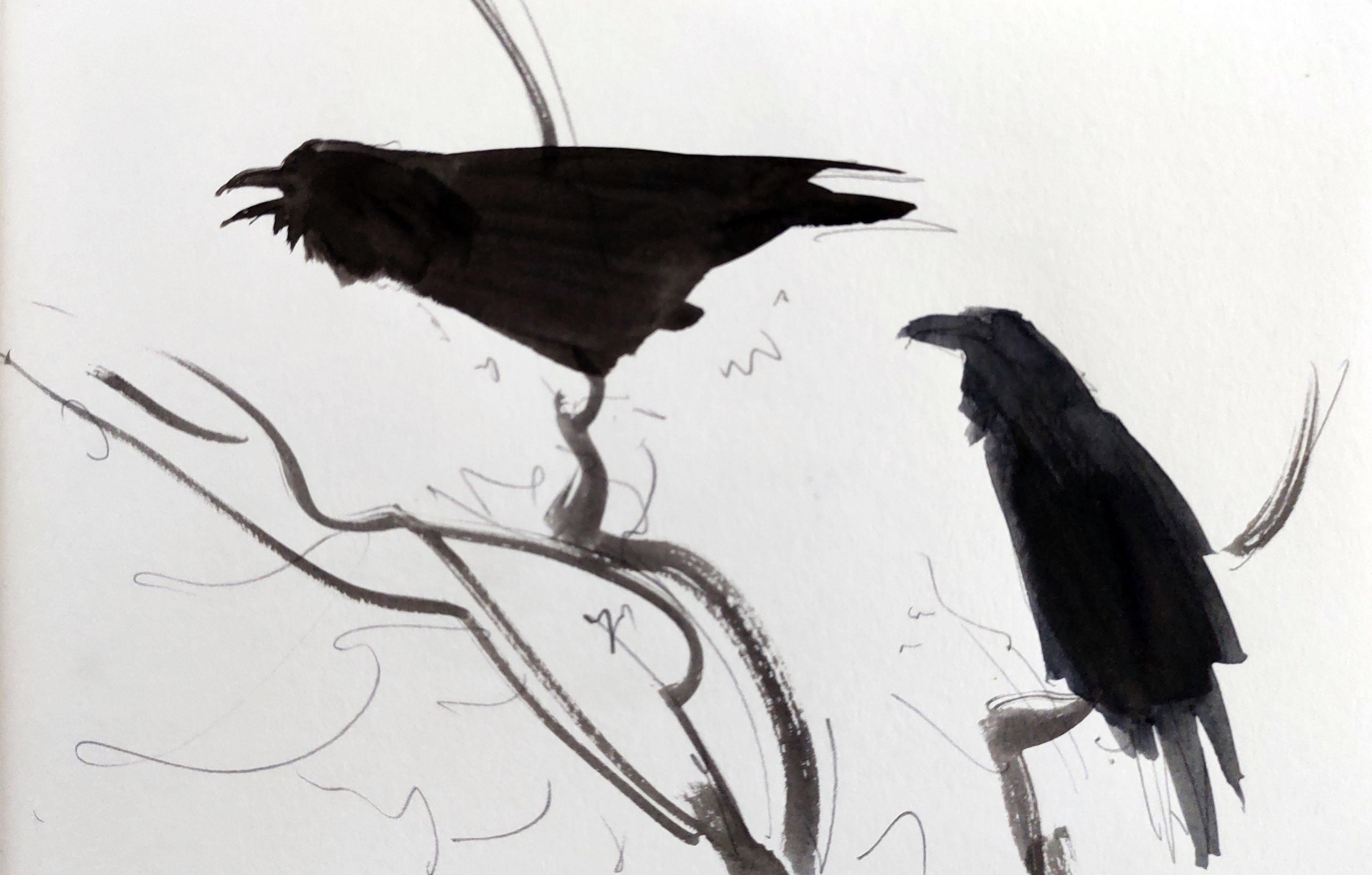 The snow was heavy and sodden, and slippery underfoot. I walked around ‘Borgen’ where there had once stood defensive fortifications in the early medieval period. The area is grazed by sheep and I followed their tracks through the snow. There were expansive views of the plantation and beyond, the heavy silence broken only by the quarrelsome bickering of ravens, already busy with establishing their territories and reacquainting their pair bonds. A secret sign of spring in the depths of winter.