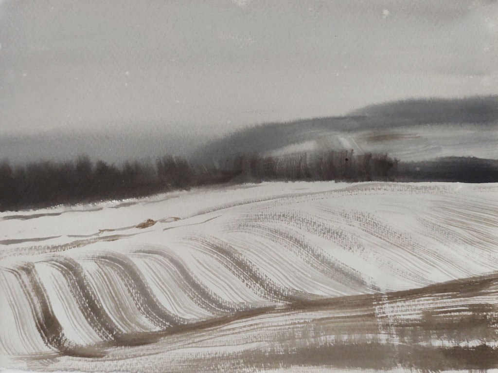 I continued onwards, through the harsh landscape, colder now that the wind had picked up a little. I had views again of the grey and bitter sea and managed to make one last painting before racing down to the pickup point and the end of the day. Exhausted as ever, and full of the day’s intensity.