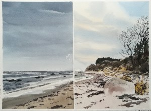 The last exhibition in Allerød was the largest and most ‘complete’ KYST exhibition. I invited nine Bornholmian artists, all of whom were heavily inspired by Bornholm’s nature, to exhibit with me -creating a whole new layer to the exhibition and the project. Again, the opening was incredibly well attended and again I was overwhelmed with all the positive feedback. I had to leave the opening a bit early and take a train to southern Jutland where I was attending an artists’ residency. On the three-hour train journey I had ample time to reflect on the exhibition, the book and the project, and digest all the supportive and affirmative feedback I’d received. Collecting the exhibition just two weeks later I was so thankful for the efforts of the gallery staff – volunteers all – who had managed the installation, manned the gallery and -not least – administered the exhibition sales.