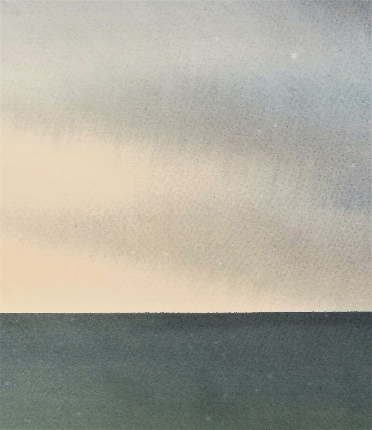Hidden behind the clouds, the sun had already begun its descent and I was feeling pressured with my lack of physical and creative progress. At Dalegårdsodden I stopped for a quick lunch under the M60, where I became fixated on the subtle and understated tones and colours of the sea and sky. For the first time since starting the KYST trip, I worked on a full and uncut sheet of watercolour paper (detail, see also top).