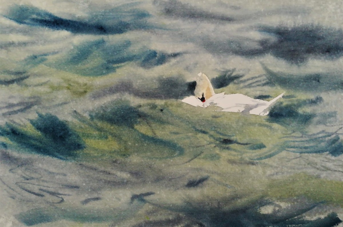 I packed up and walked on, exploring the open area by Mølledal, where dunes sloped gently from the coast up to some summerhouses hidden within a small pine plantation. By three in the afternoon the day was almost over. I sat and watched a solitary mute swan bobbing around in the choppy waves. The day seemed so short and dull and the weather so harsh, I wondered how the swan could thrive or even exist in such an environment. As the light faded and the misty fine rain returned, the swan preened and jigged about in the water, both separate from, and at one with, the world surrounding it.