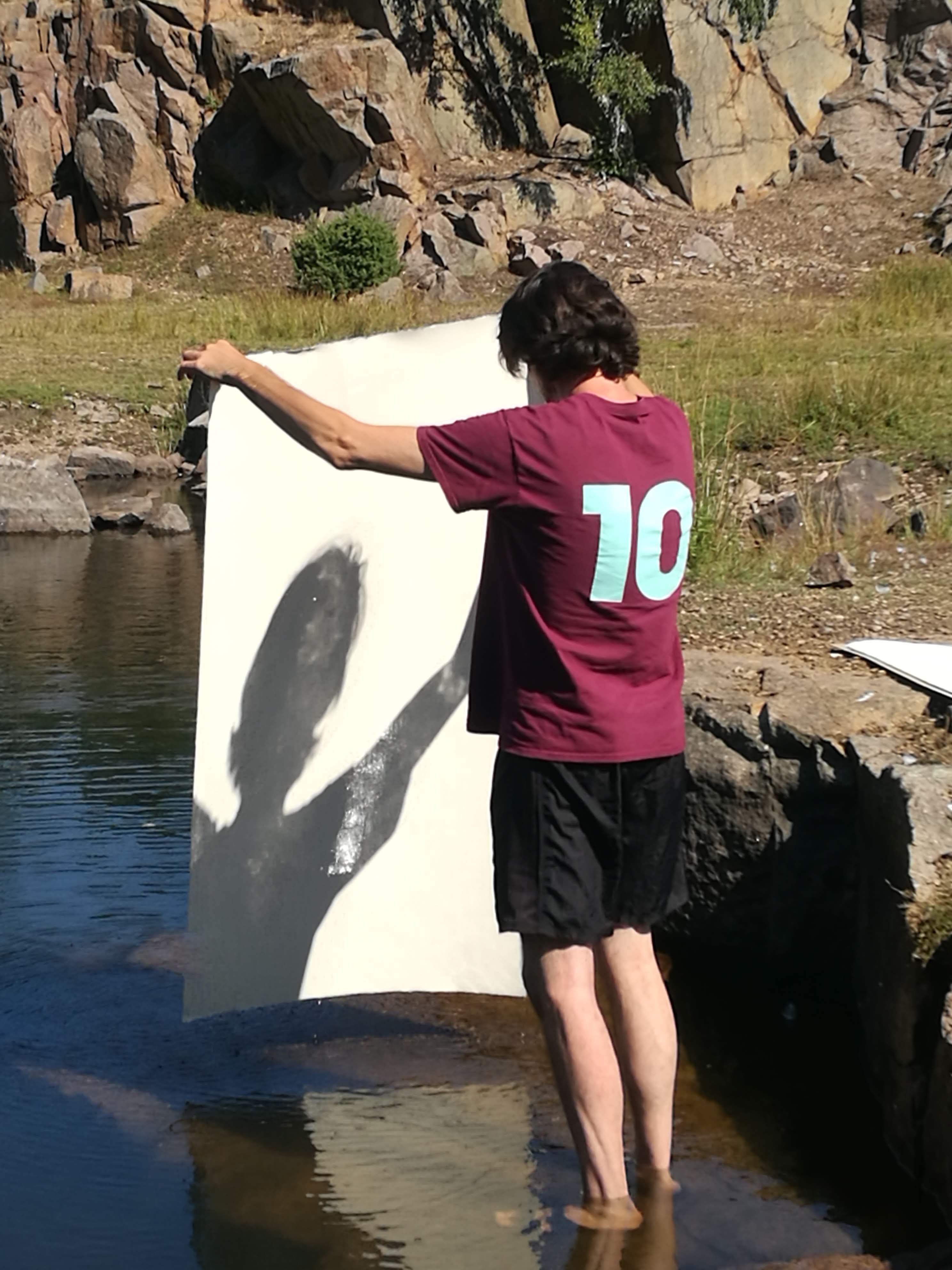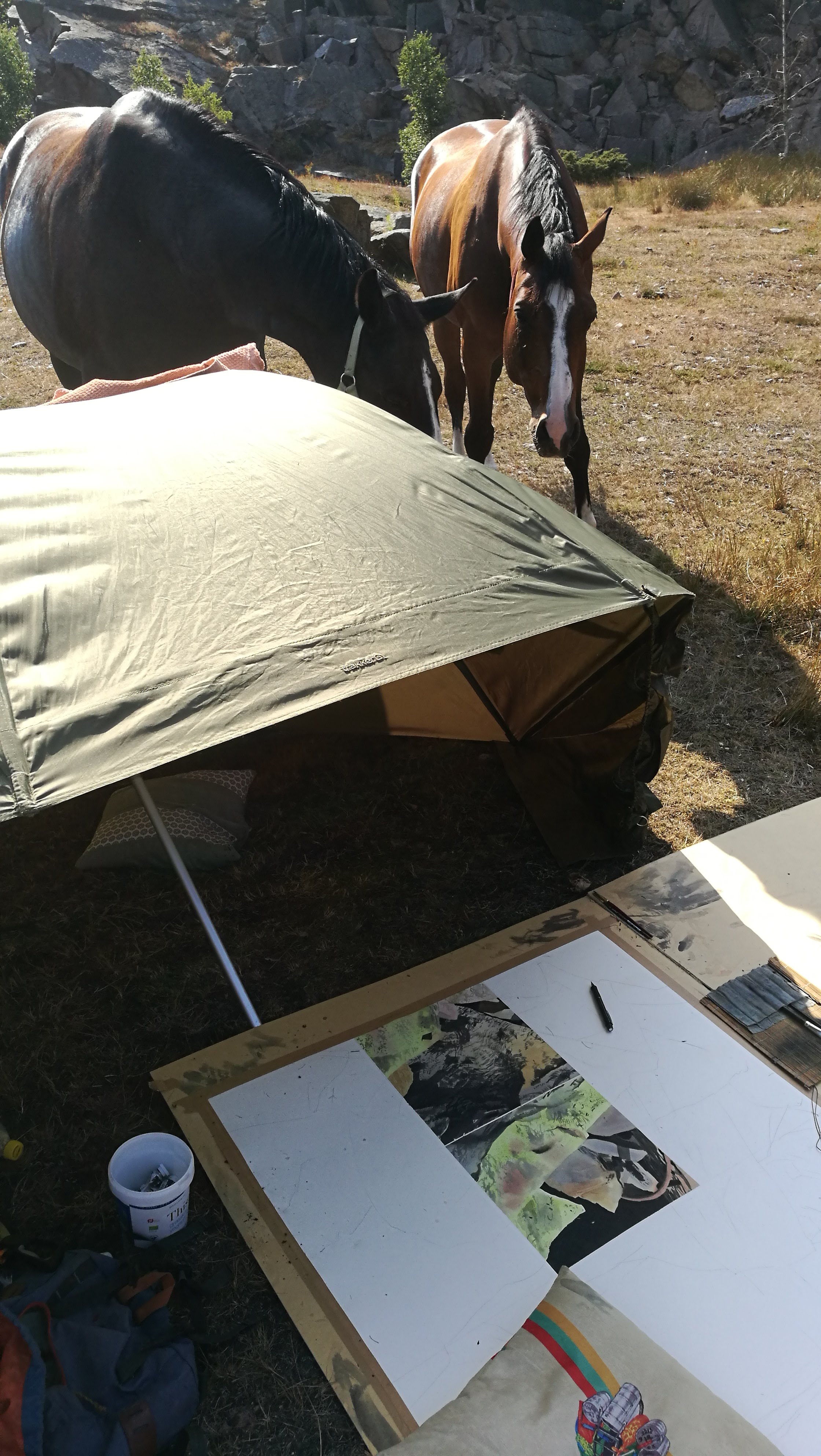 I walked on through the forest and came across a huge ants’ nest, a veritable mountain of pine needles heaving with ceaseless activity. I painted a sheet of paper and left it on the nest, eager to see if their tracks or formic acid would leave traces on the paper.