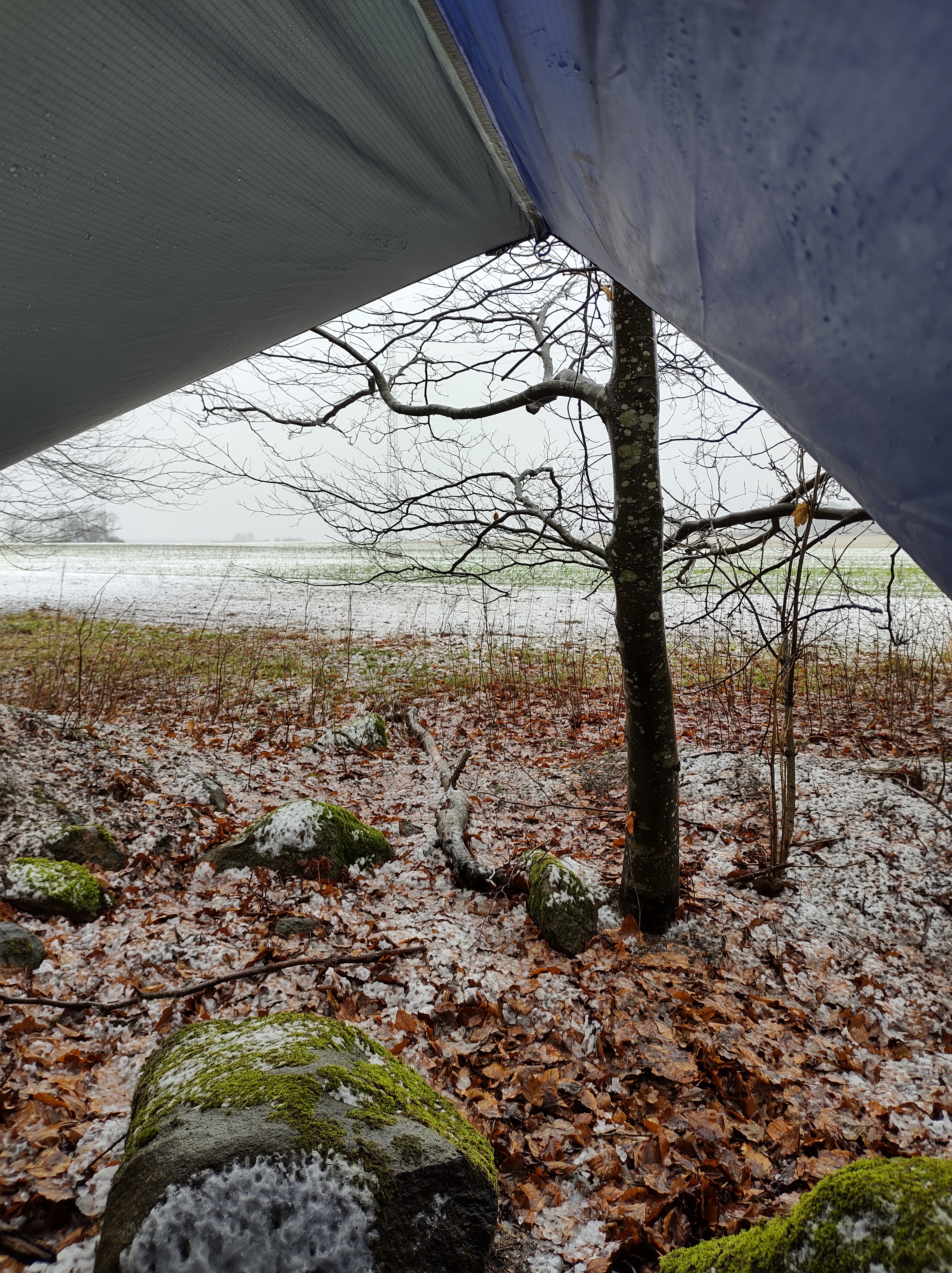 My wanderings took me close to the coast and to one of my favourite walks on Bornholm. Here a pine forest borders the beach. Through wizened and twisted trunks and branches I caught a glimpse of the Baltic Sea.