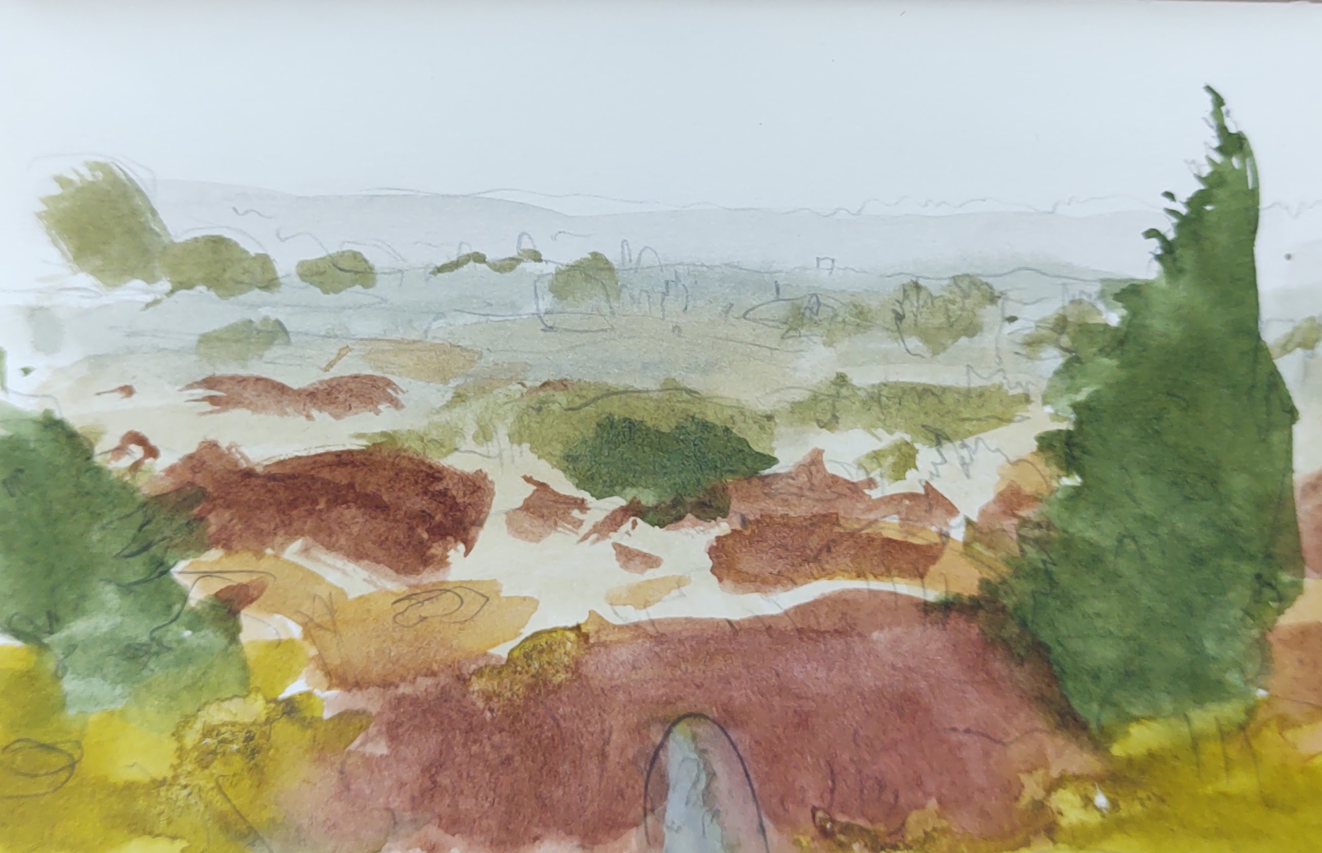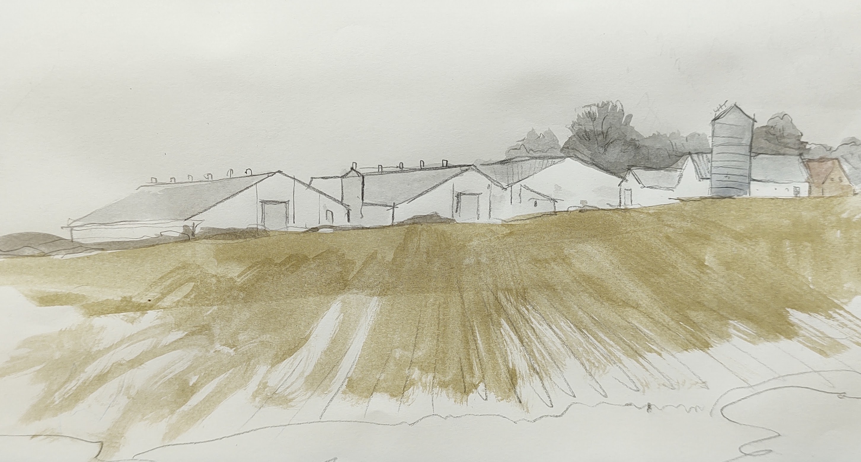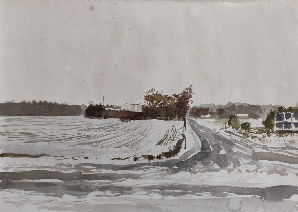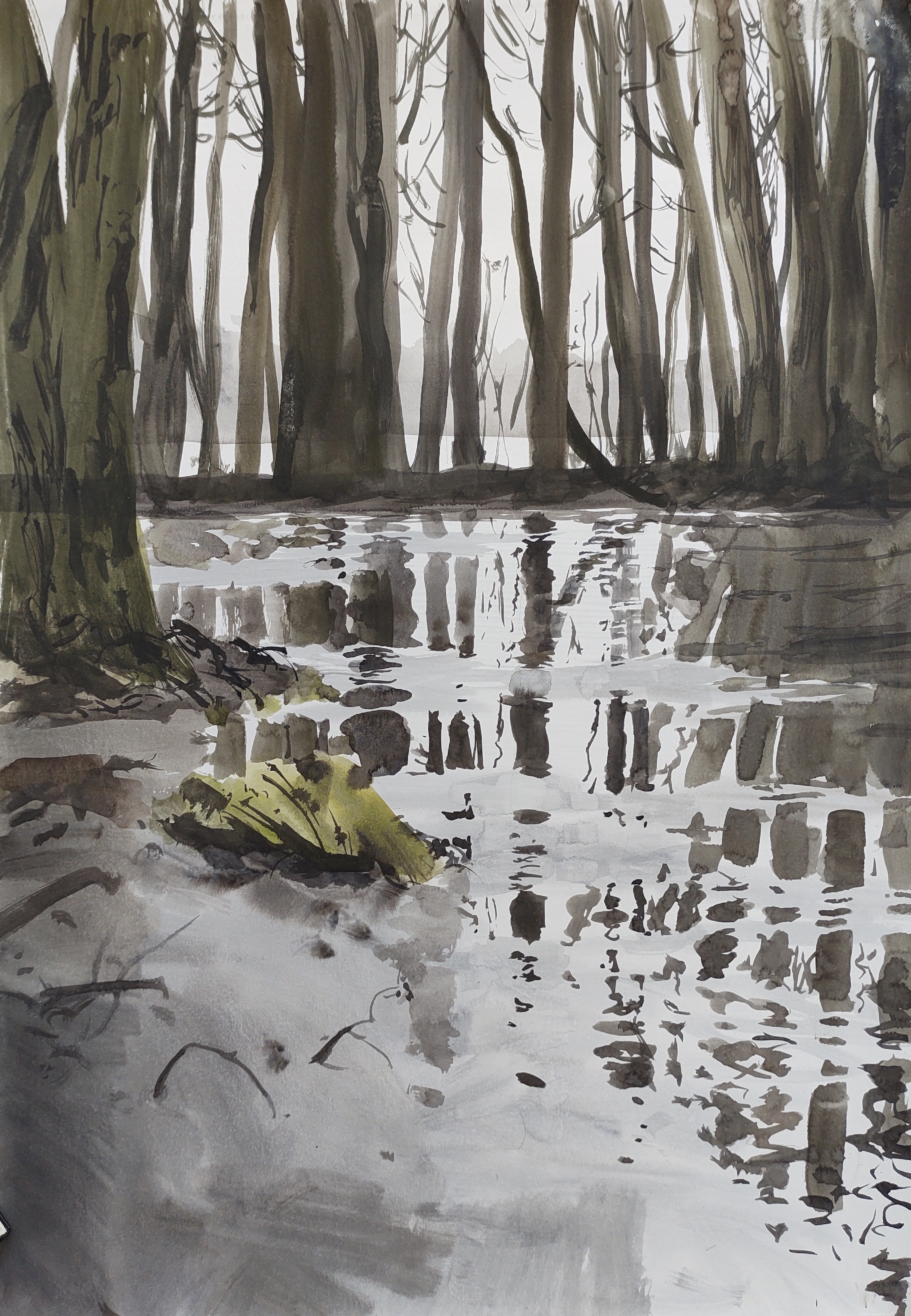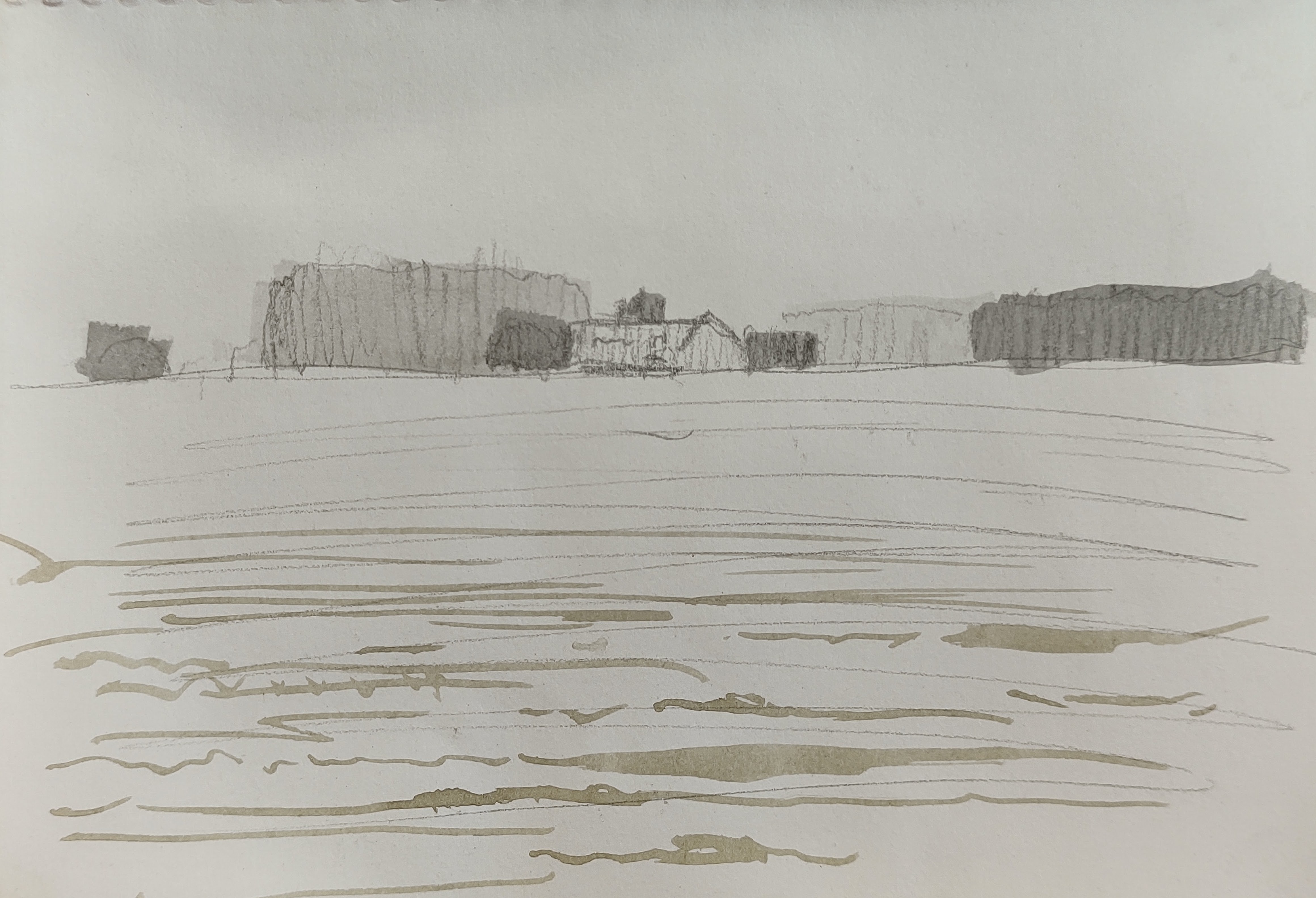 The wood bordered a maize field. I spent a long while trying to capture the different greens and how they fitted together. By the end of it my eyes and brain were exhausted.