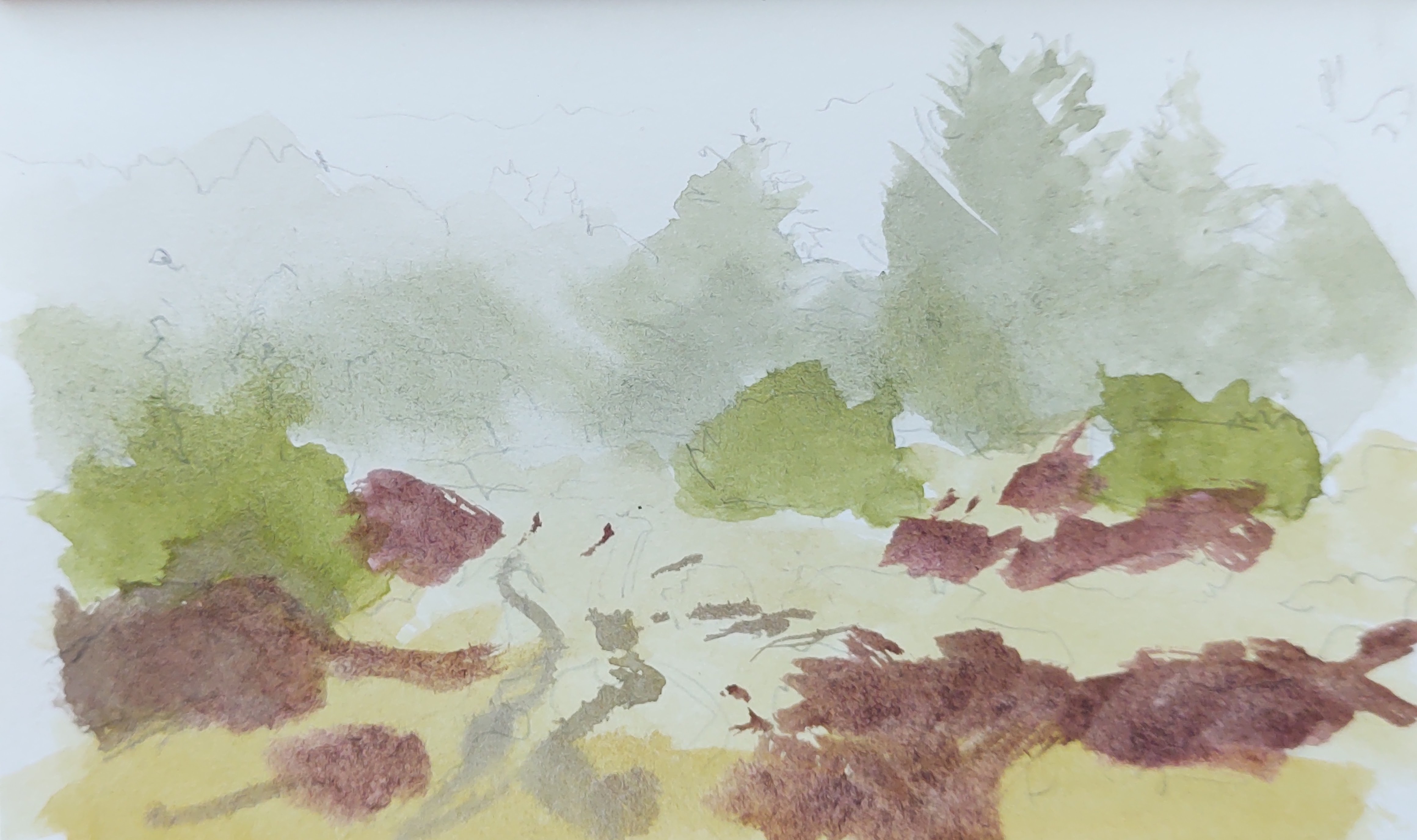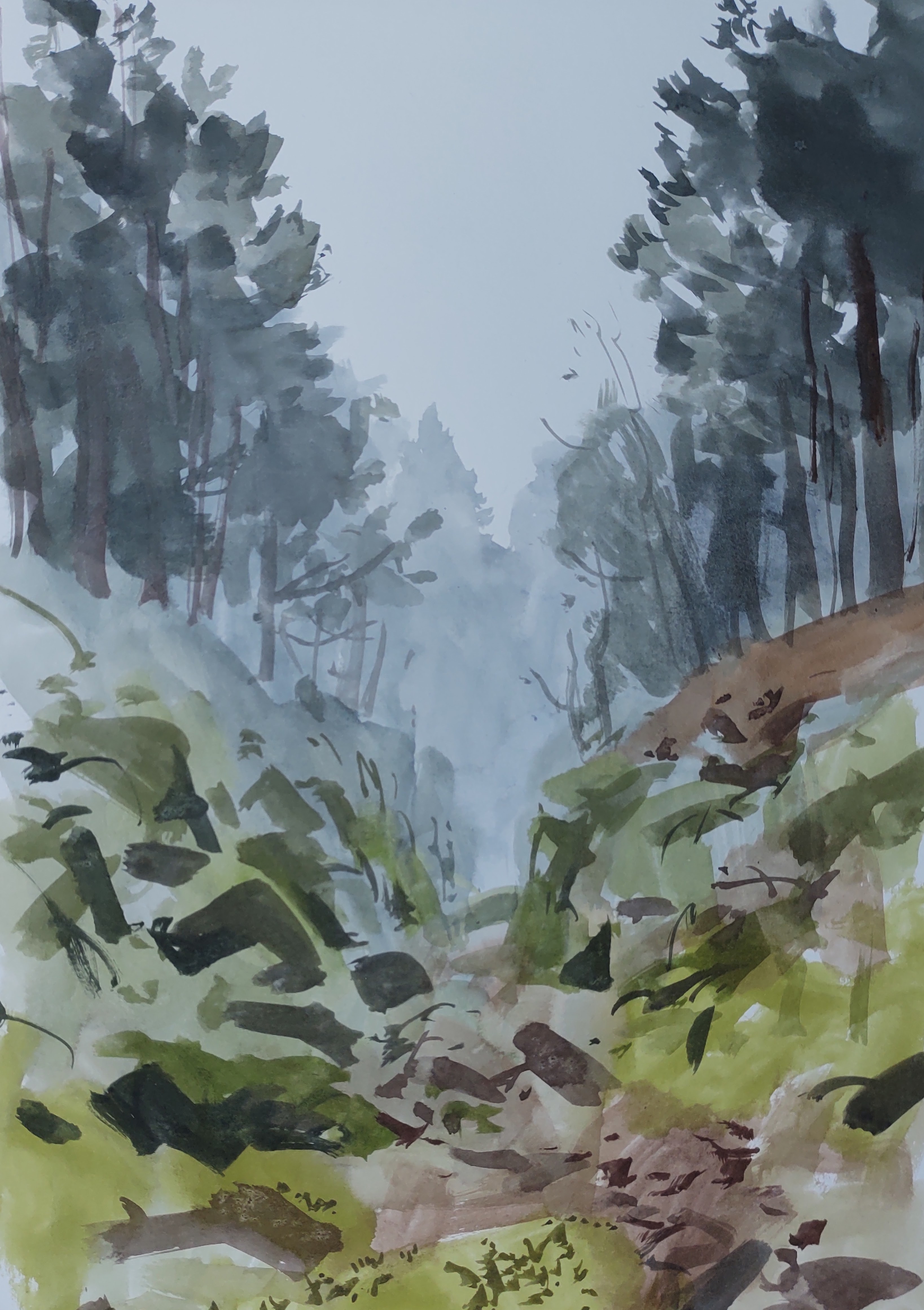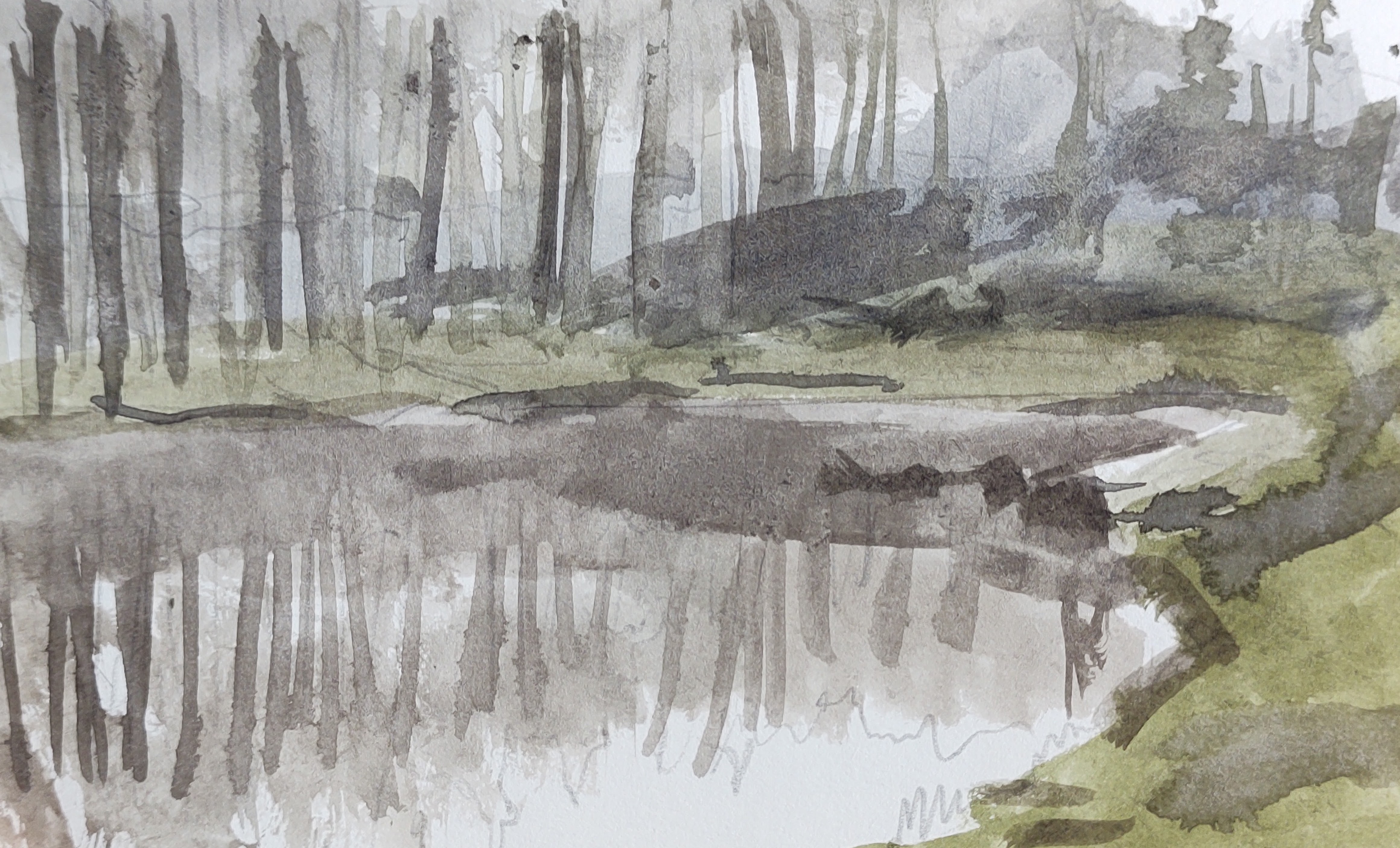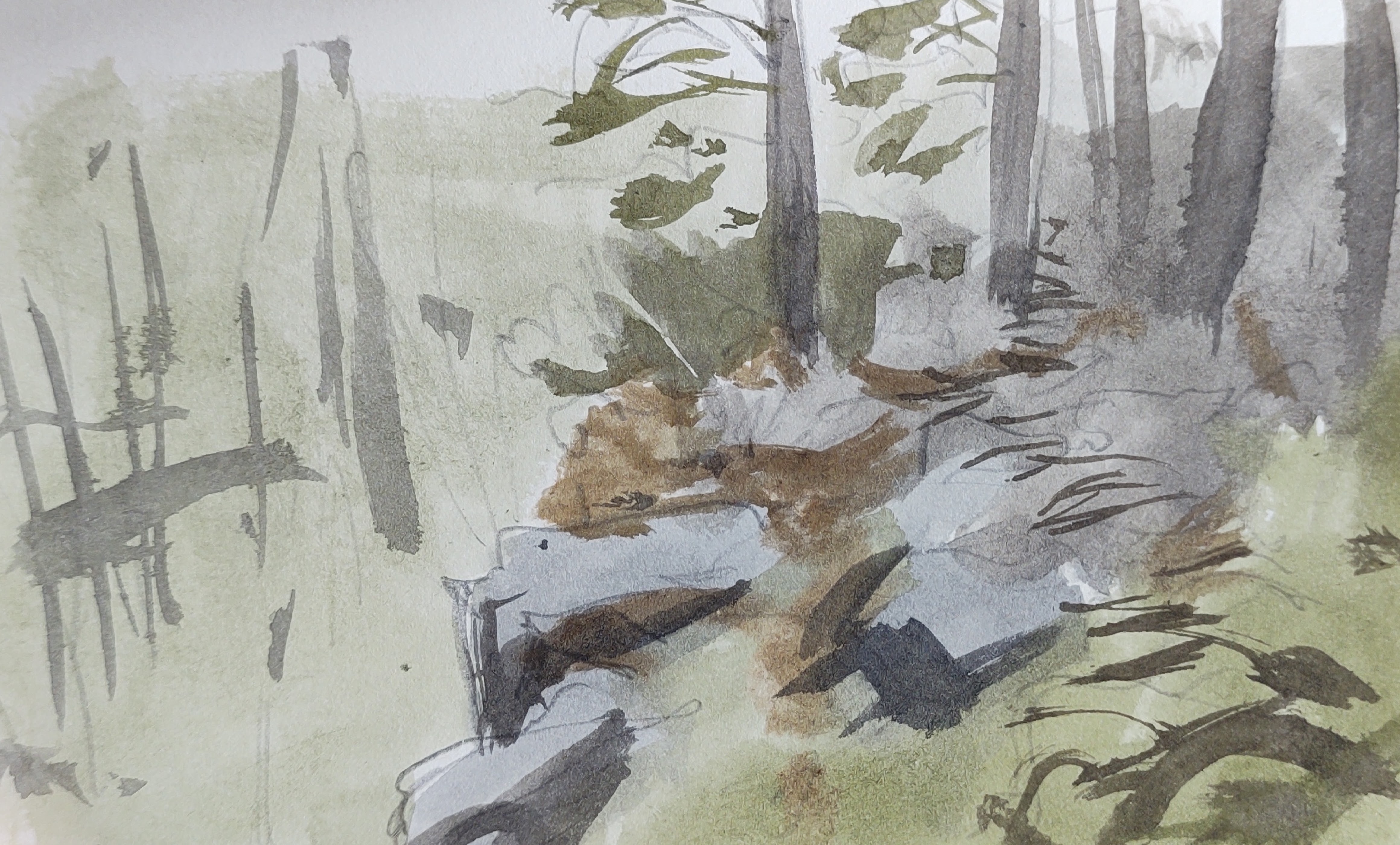 The wood bordered a maize field. I spent a long while trying to capture the different greens and how they fitted together. By the end of it my eyes and brain were exhausted.