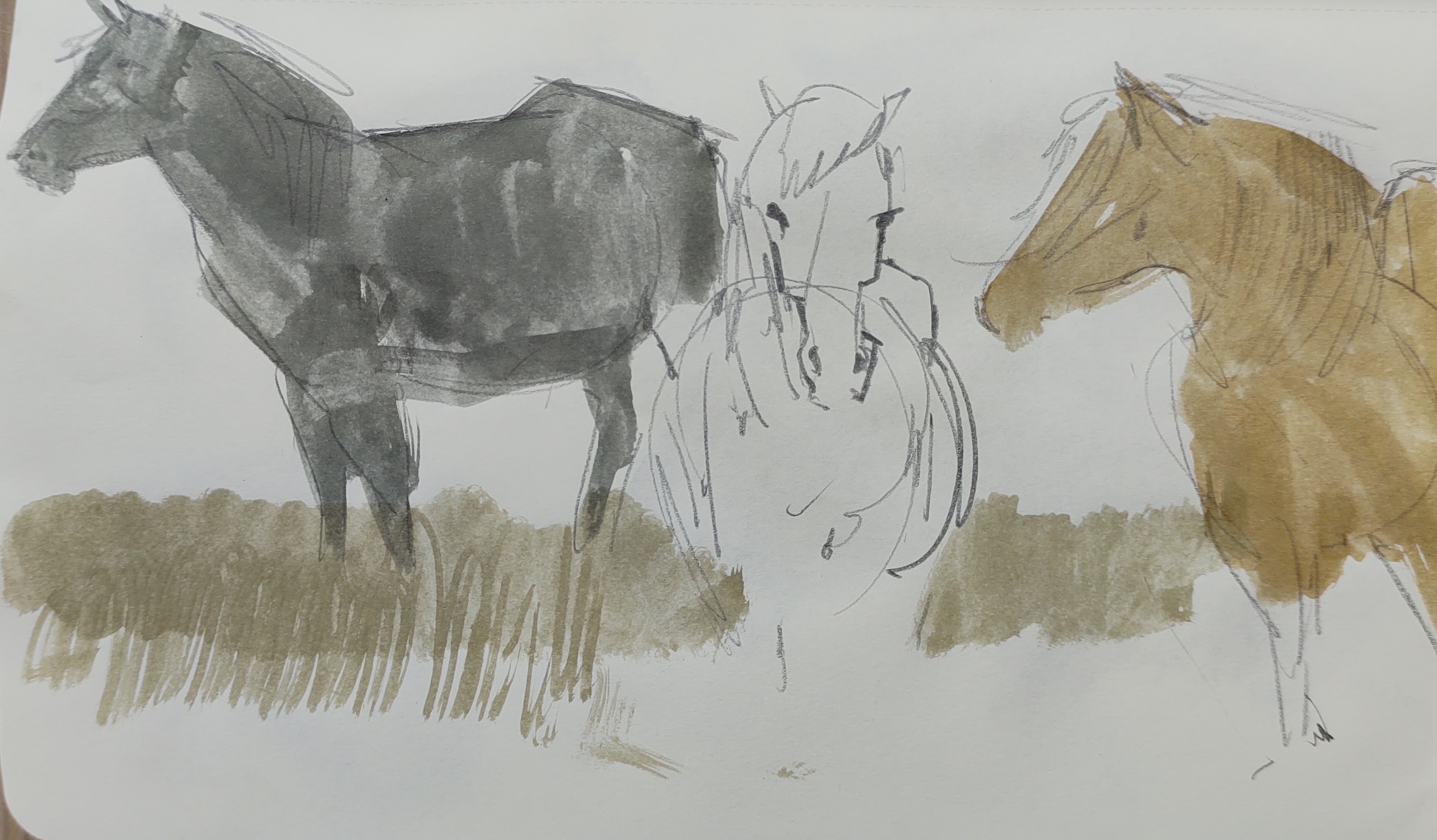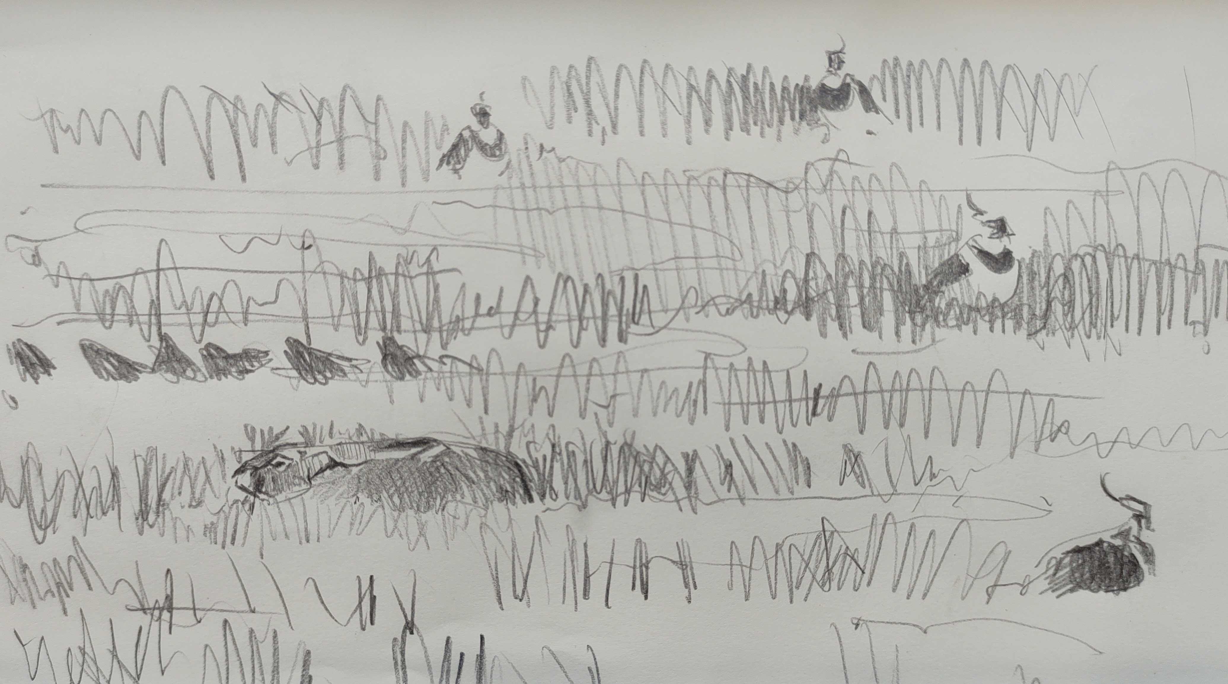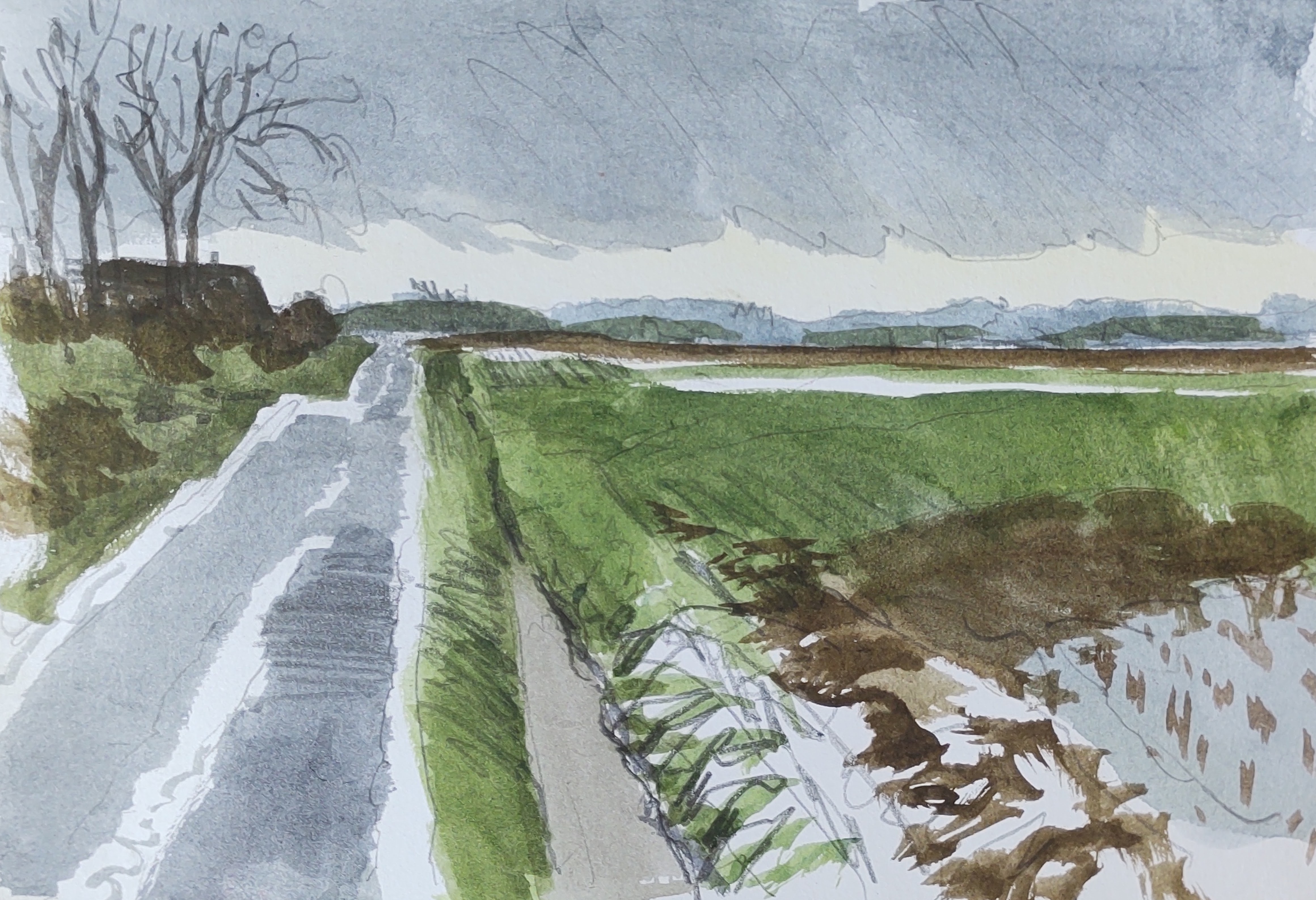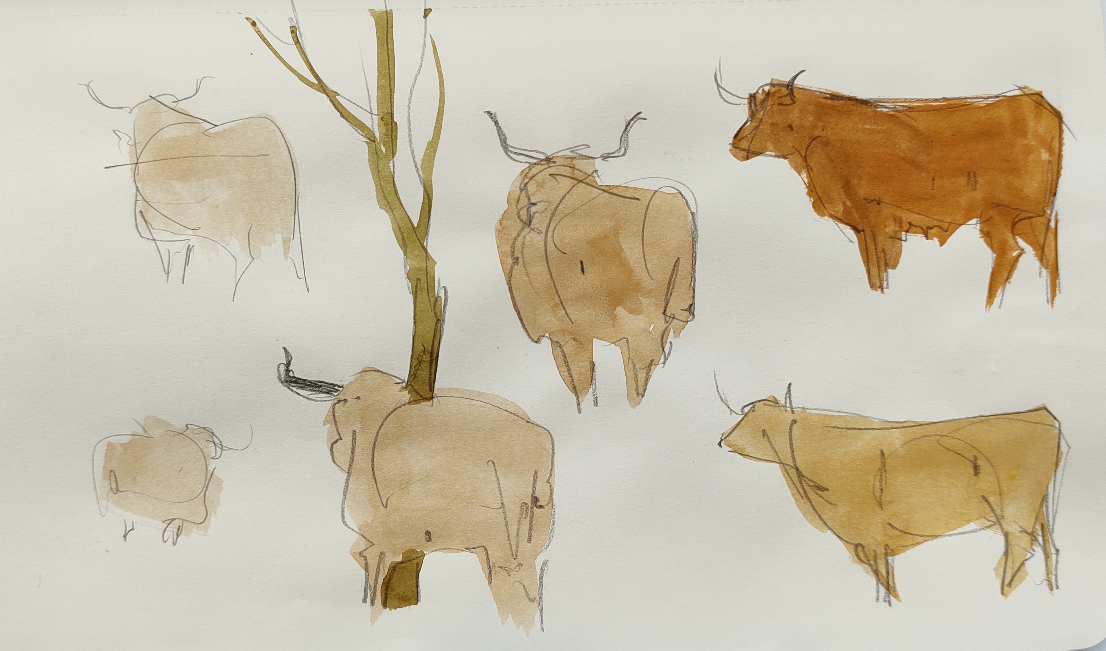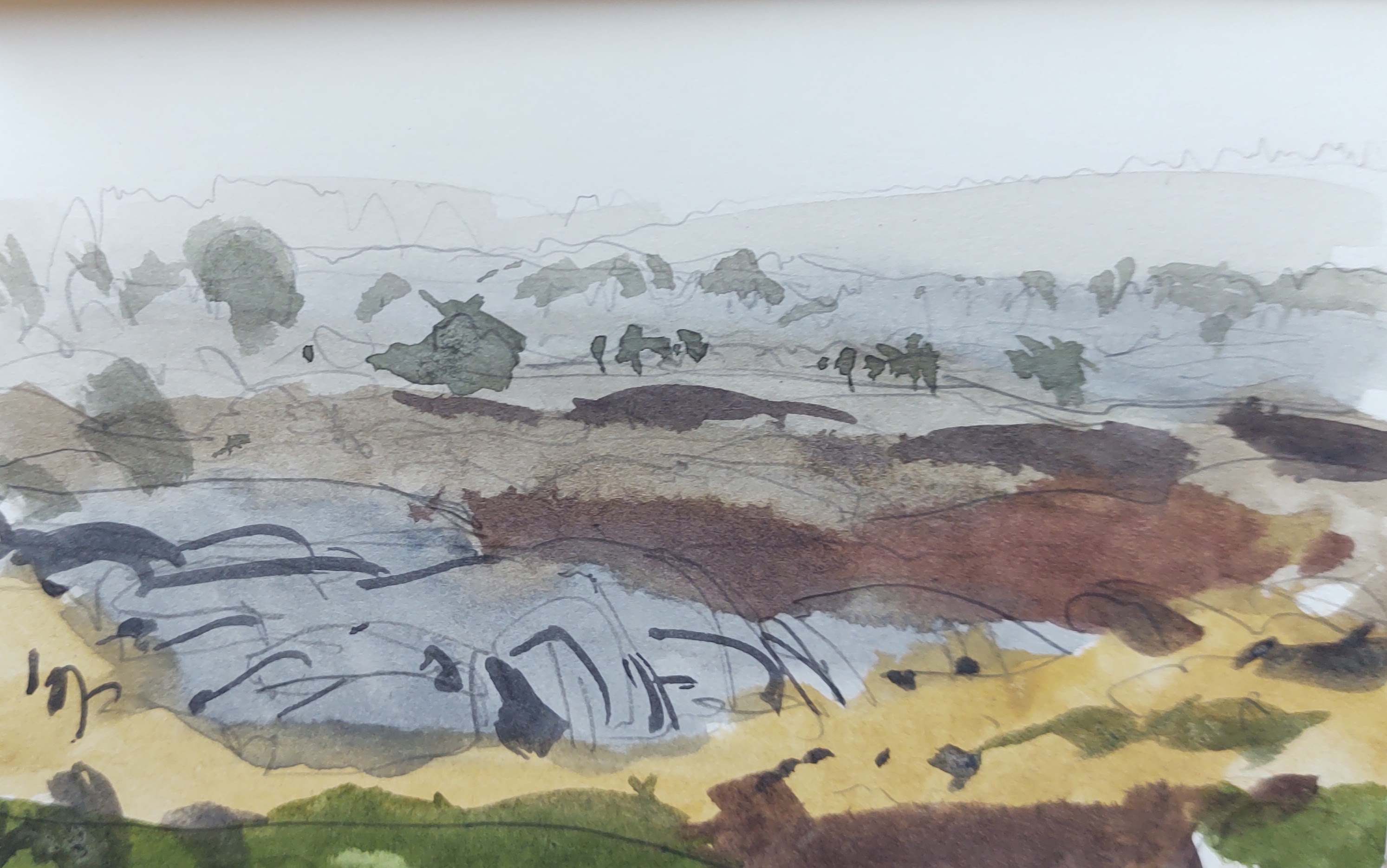 The wood bordered a maize field. I spent a long while trying to capture the different greens and how they fitted together. By the end of it my eyes and brain were exhausted.