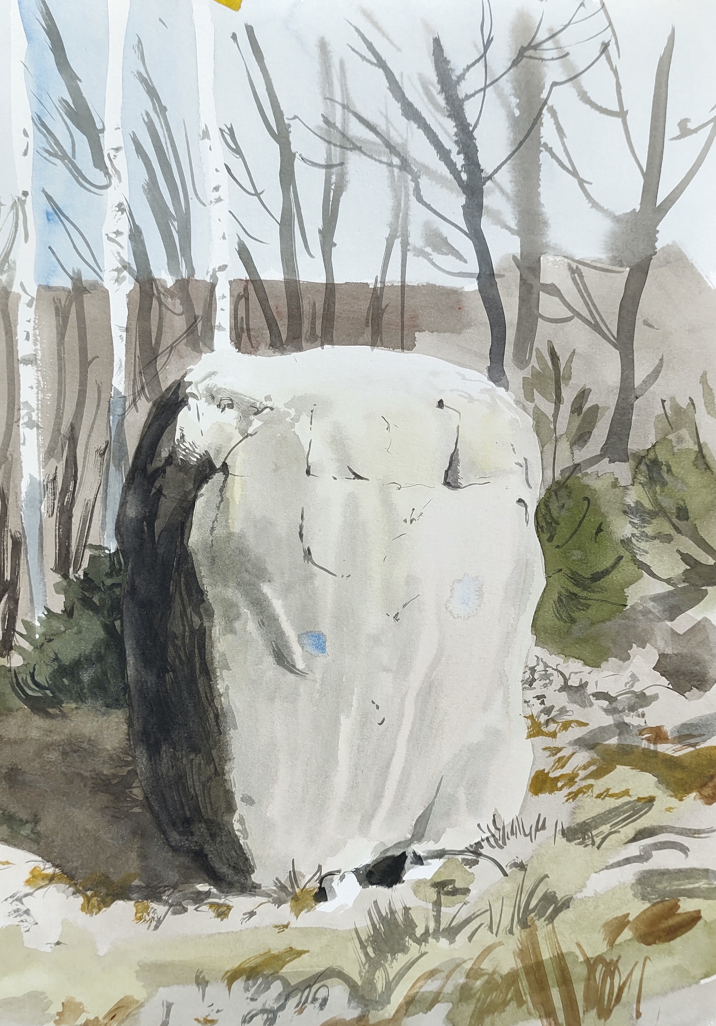 The day was slipping away, and I still had a way to go. I headed west along a small road, then dived back into the woods, following a new walking route, the ‘Højlyngsstien’, for a while. Deep in the woods, I arrived at the Ole Christiansen’s sculpture park – scores of organic granite forms standing in the grass. I started to draw each sculpture, aquatinting myself with the soft and convoluted shapes of each and every sculpture, quickly feeling a stronger and deeper bond with the artworks, and indeed the artist. I was reminded of the transformative nature of the act of drawing – the power of really looking.