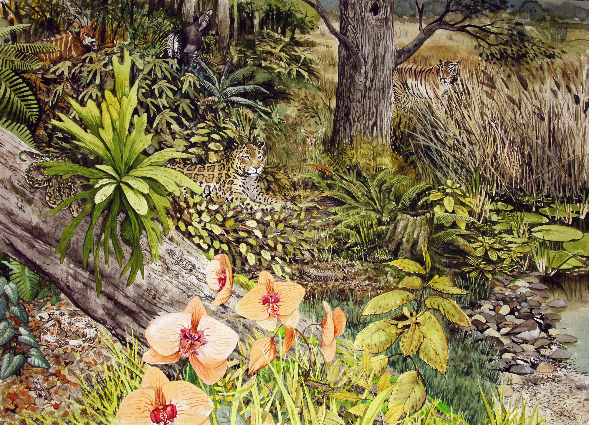 CAM Watercolour, 750 x 550mm. Poster design – there are 22 animlas hidden, some more obviously than others…