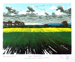 Lino-cut, 200 x 170mm, edition of 17, £85. One of a series of four seasonal studies of Bornholm