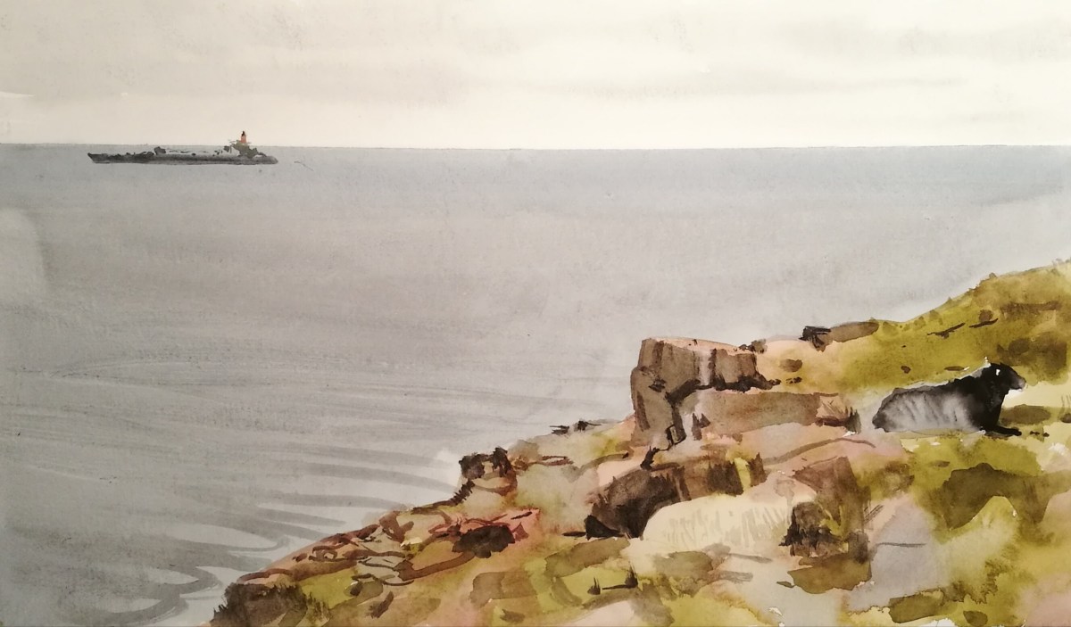 Jeg malede nogle måger og alliker. De sidstnævnte sad på taget af de seje nye træhuse. En guldspurv sang, men eller var der kun lidt fugleliv, og foråret virkede meget langt væk.