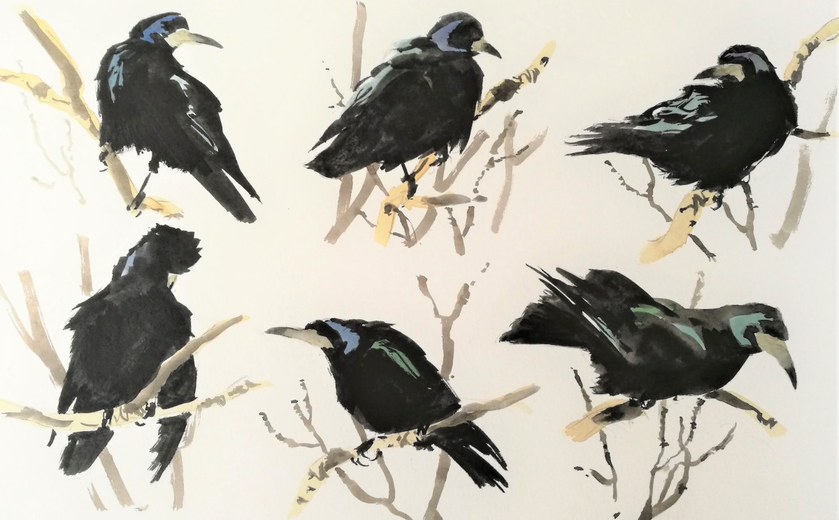 Jeg spiste en sen frokost og snakkede med en venlig mand, som gik tilbage til sit hus og kom hurtigt tilbage med en ’lille en’. Det var en hyggelig og uventet pause, og jeg forsatte i bedre humør. Jeg begyndte at tegne et par gravænder, hvis fantastiske orange og grønne farver var afspejlet i klipperne og vandet rundt omkring. Men, som tit sker, kunne de desværre ikke lide at stå som modeller, og de gik hurtigt videre.