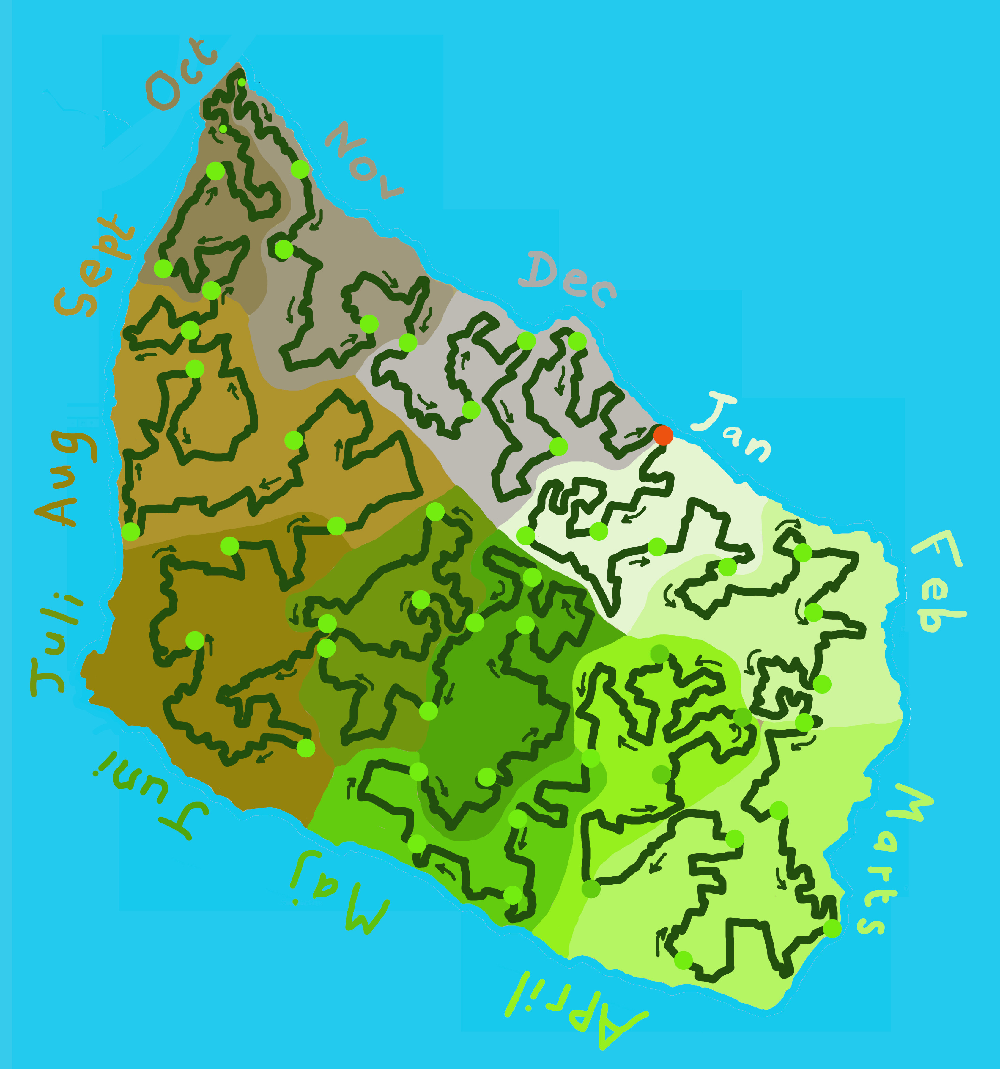 The ‘interactive’ elements of the project were updated weekly. My meandering path drawing a line around the island was recorded by my phone’s GPS and uploaded to this map
