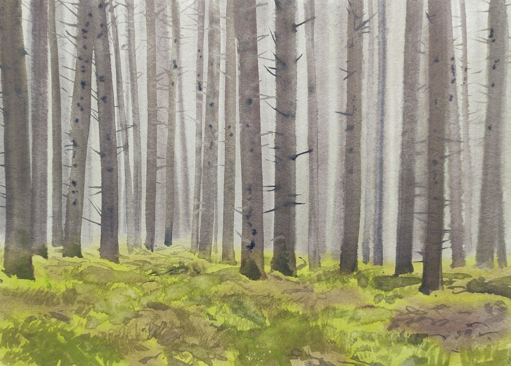Just like the KYST project, LAND took place on the Danish Island of Bornholm and consisted of a series of 52 consecutive walking tours, one for each week of the year. Each walk took place on Friday and begun at dawn and ended at dusk, whatever the weather and however long the day was. I started at the point where I finished the previous week’s walk – painting, drawing, and recording what I experienced as I went.